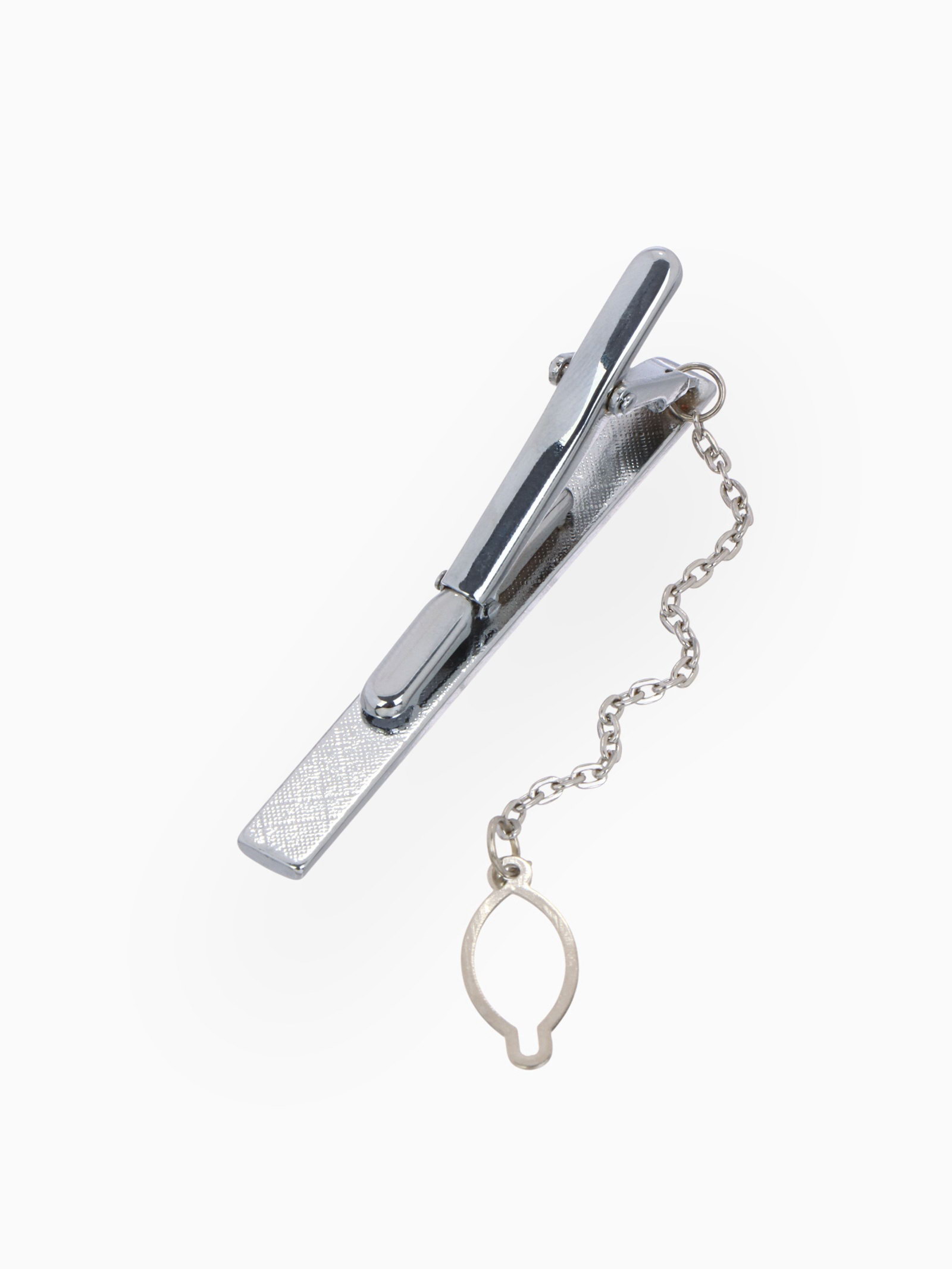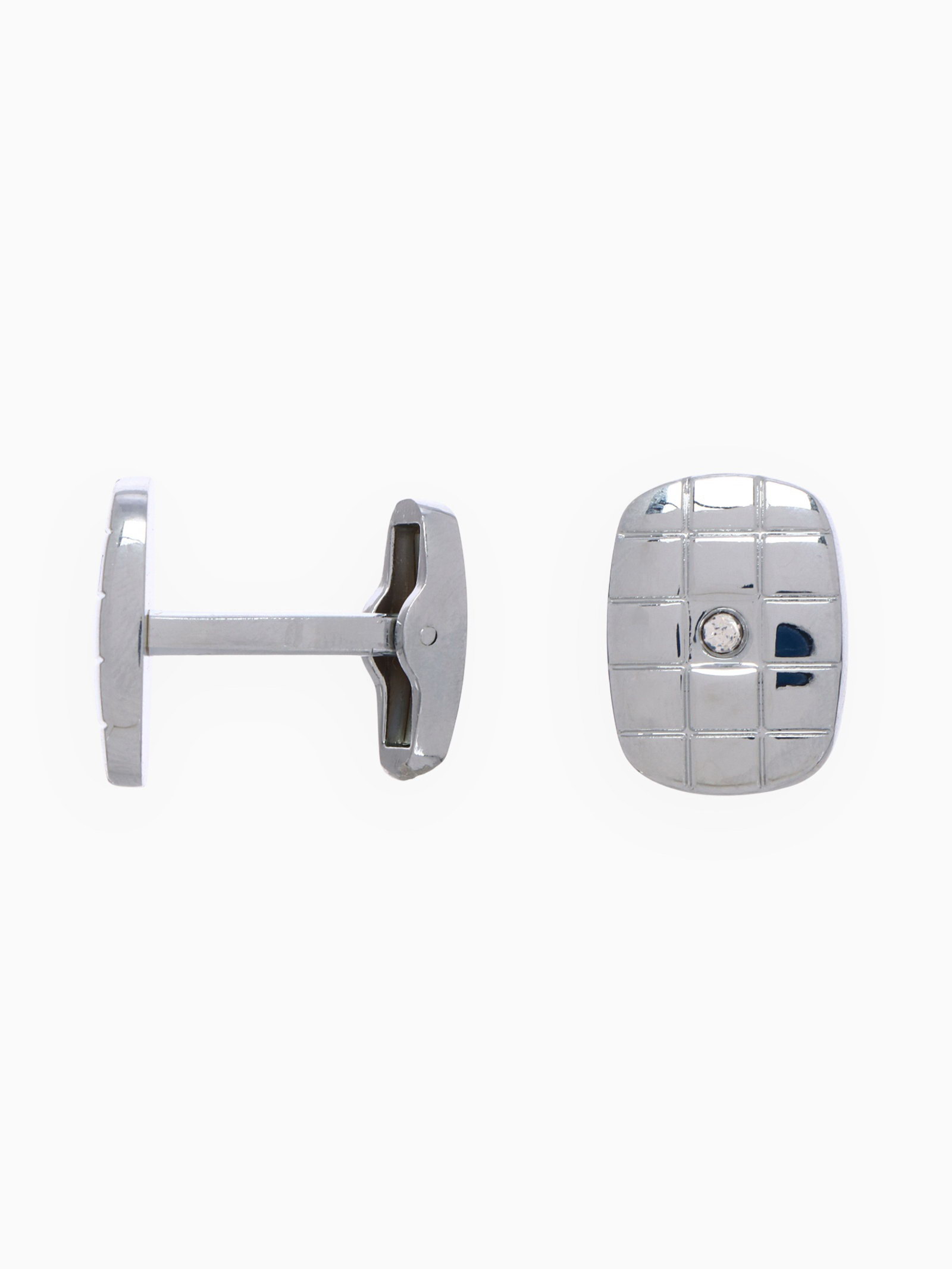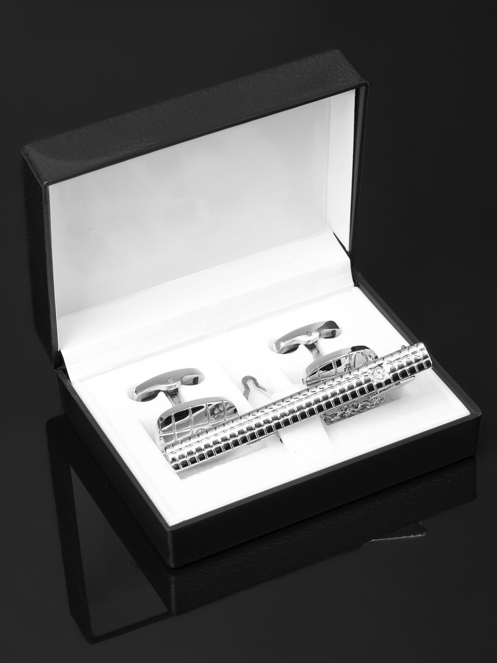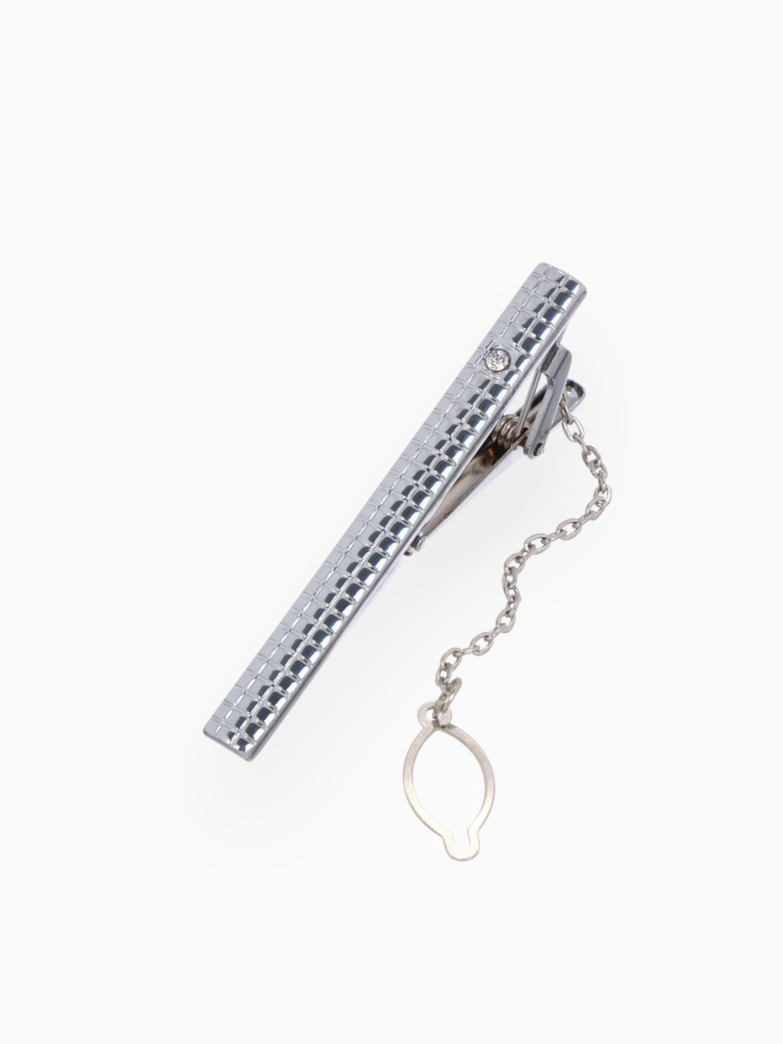 Набор мужской стальной "Запонки + Зажим для галстука" клетки, белый в серебре, 1.7x6x1.7 см., Китай