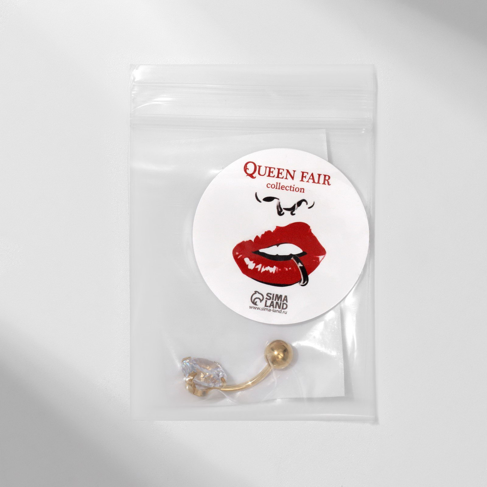 Пирсинг в пупок "Банан" с цирконом, L=1.9 см, белый в золоте, 0.8x1.9x0.2 см., QF, Китай