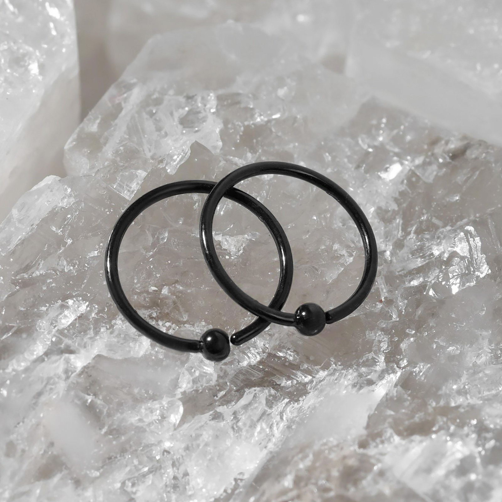 Пирсинг в нос "Кольцо и бусина", d=8.5 мм, пара, чёрный, 0.3x0.9x0.1 см., QF, Китай