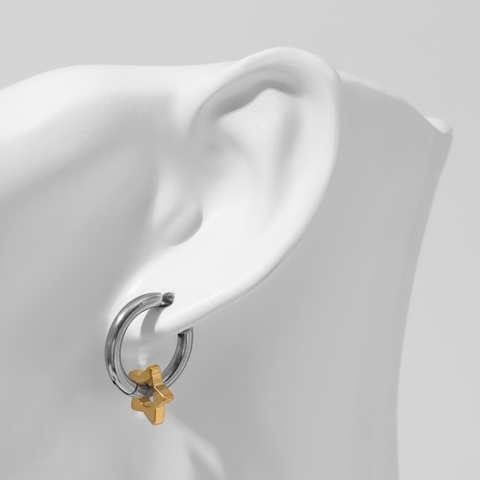 Пирсинг в ухо "Кольцо" звезда, d=12 мм, цвет серебристо-золотой, 1.2x2x0.6 см., QF, Китай