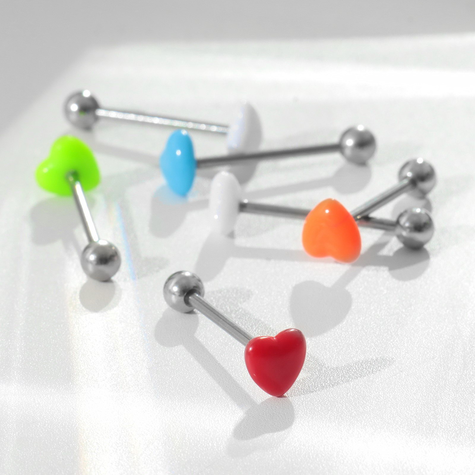 Пирсинг в язык "Сердце" минимал, L=1.9 см, МИКС в серебре, 0.1x1.9x0.5 см., QF, Китай