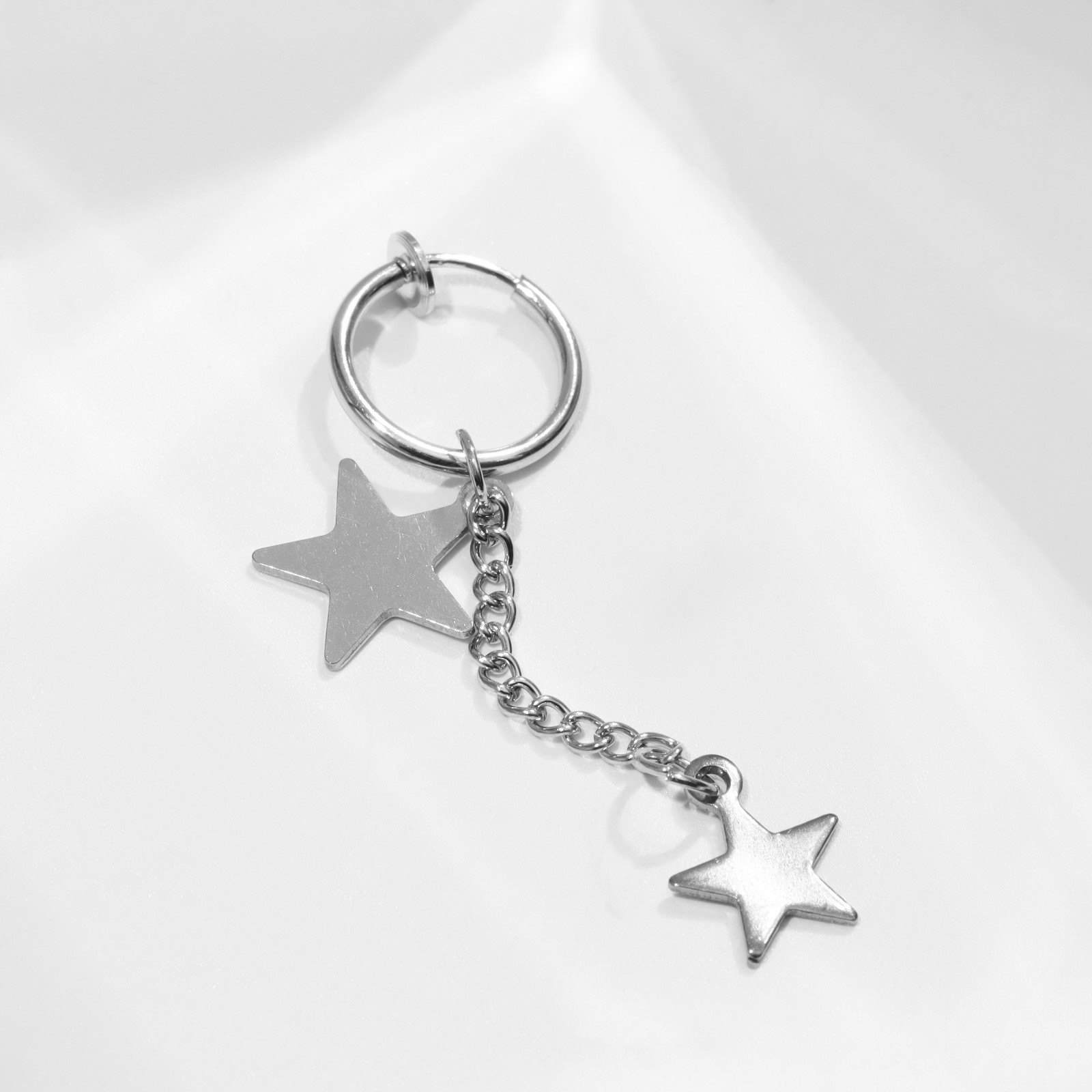 Пирсинг в ухо "Звезда" дуэт, d=12 мм, цвет серебро, 1.2x4.7x0.7 см., QF, Китай