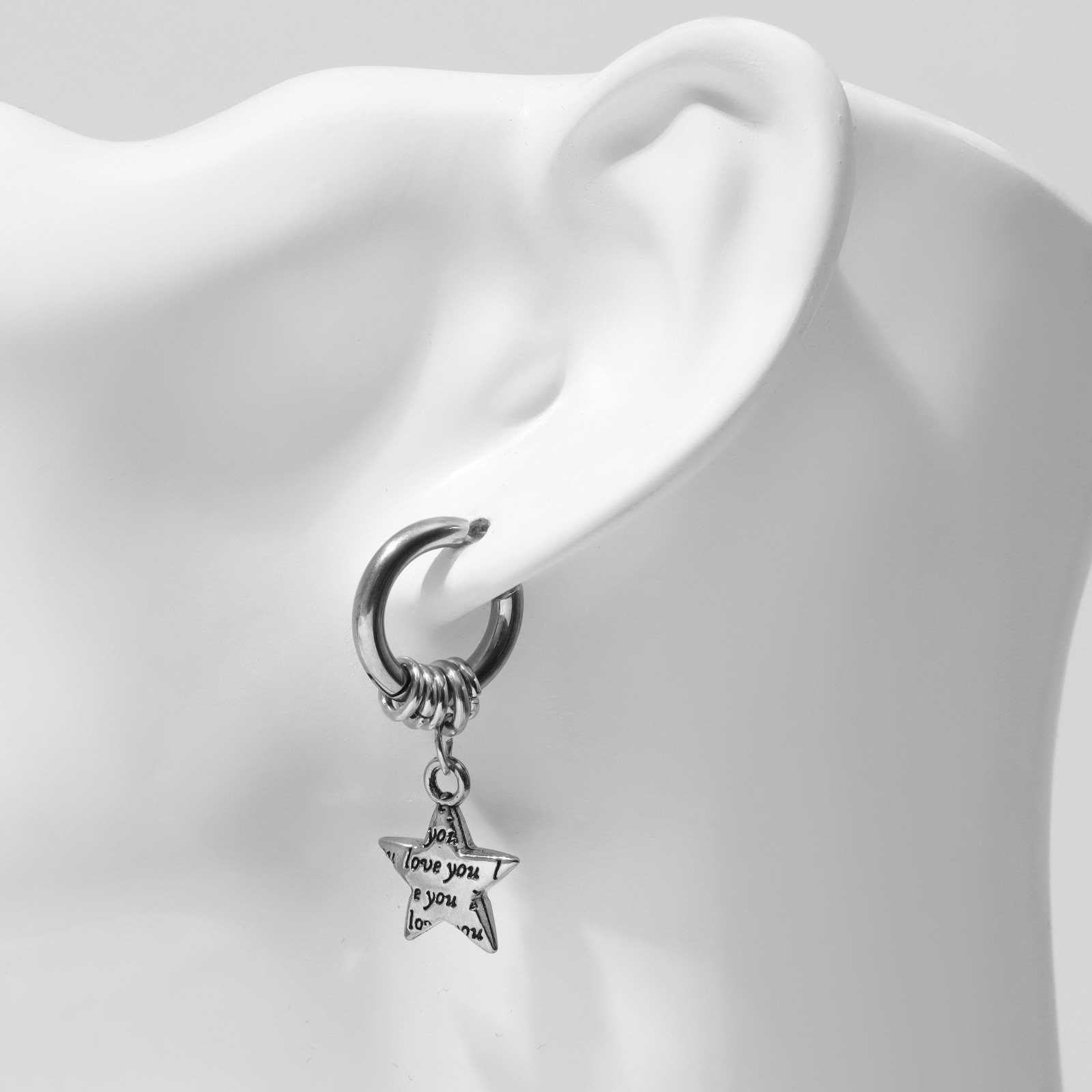 Пирсинг в ухо "Кольцо" звезда love you, d=9 мм, цвет серебро, 0.9x3x1.2 см., QF, Китай