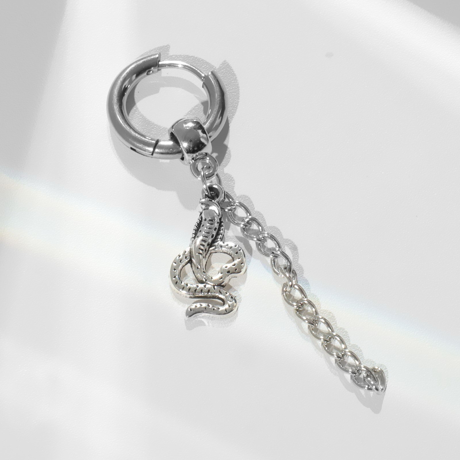 Пирсинг в ухо "Кольцо" змея с цепью, d=13 мм, цвет серебро, 1.5x4x1.2 см., QF, Китай