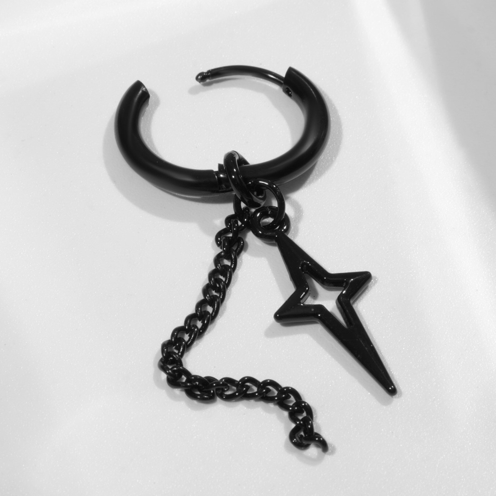 Пирсинг в ухо "Кольцо" звезда полярная с цепью, d=15 мм, чёрный, 1.5x5.5x1 см., QF, Китай