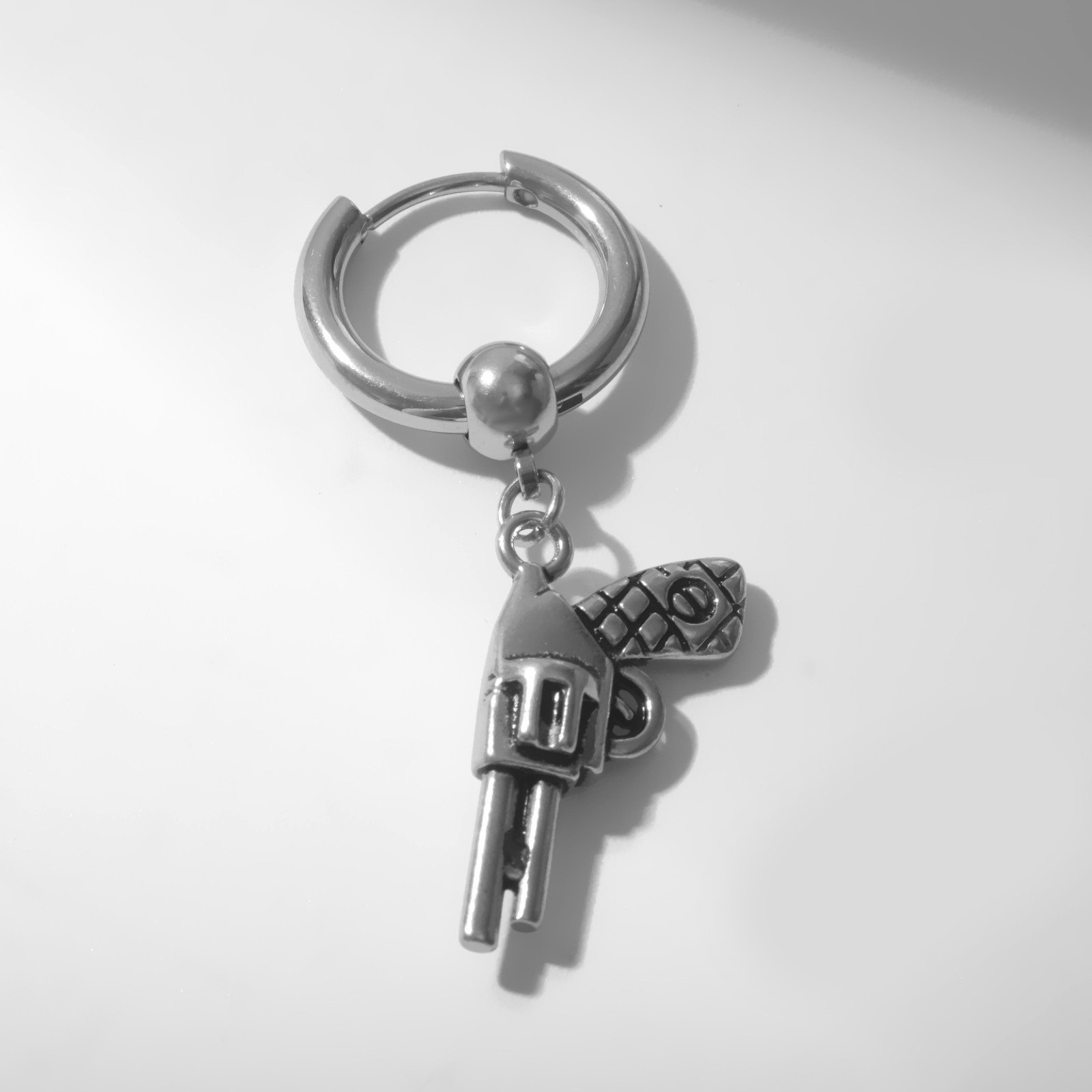 Пирсинг в ухо "Кольцо" револьвер, d=15 мм, цвет серебро, 1.5x4x1 см., QF, Китай