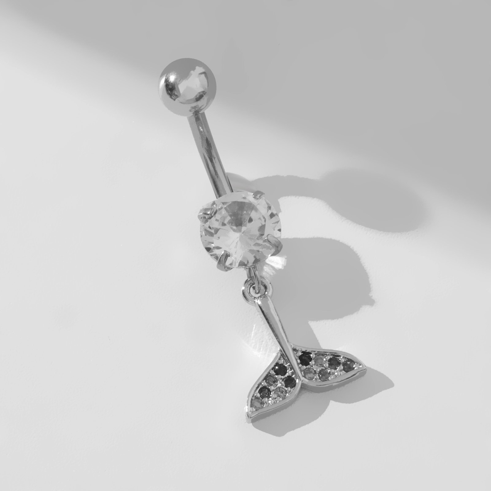 Пирсинг в пупок "Хвост" кита, штанга L=1 см, белый в серебре, 1.2x3.3x0.5 см., QF, Китай