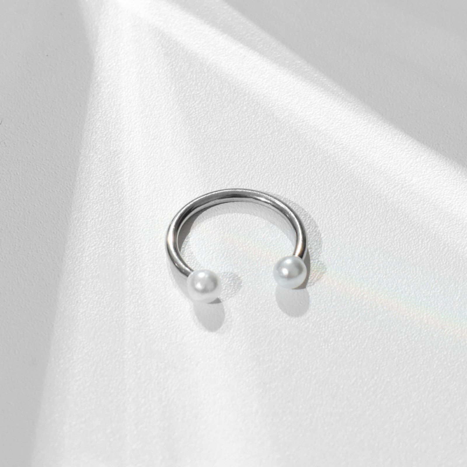 Пирсинг в бровь "Жемчуг" дуо, d=10 мм, белый в серебре, 1x1x1 см., QF, Китай