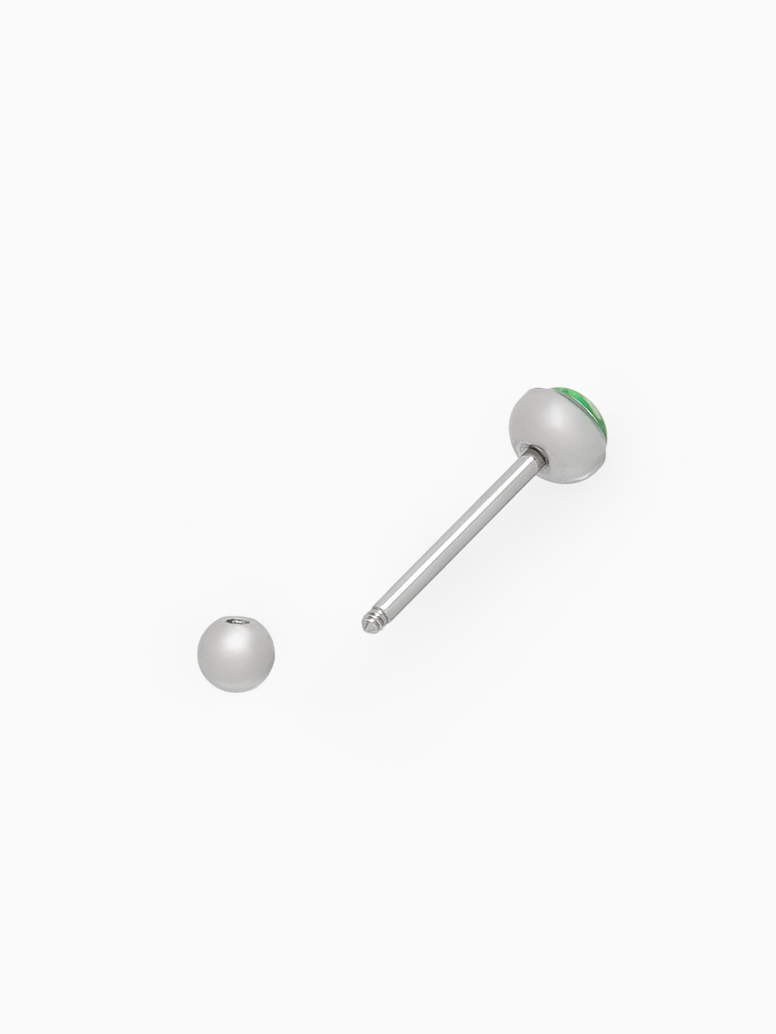Пирсинг в язык "Штанга" глазик, L=2.5 см, зелёный в серебре, 0.7x2.5x0.5 см., QF, Китай