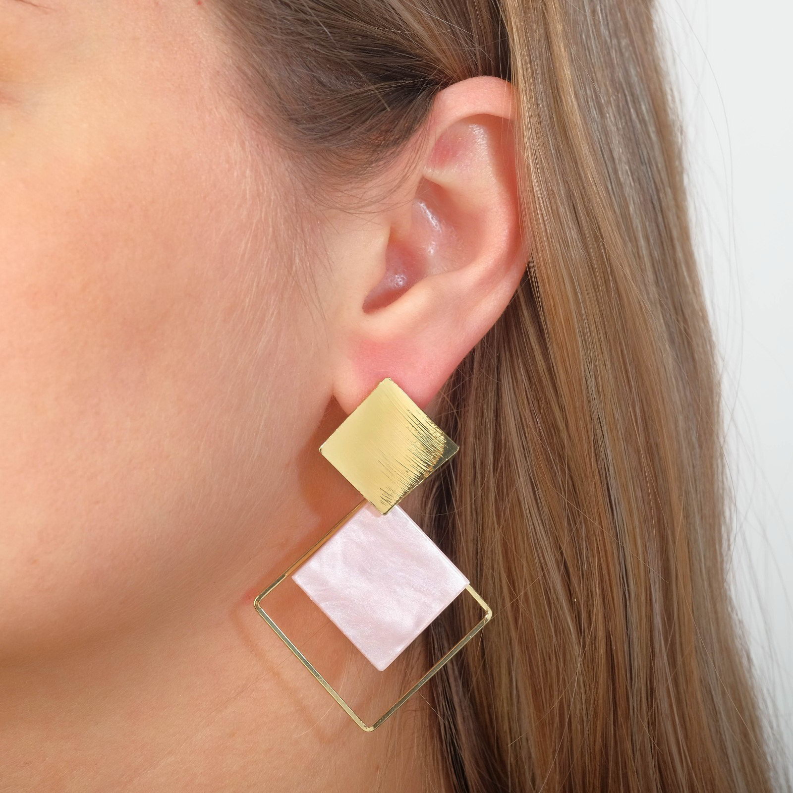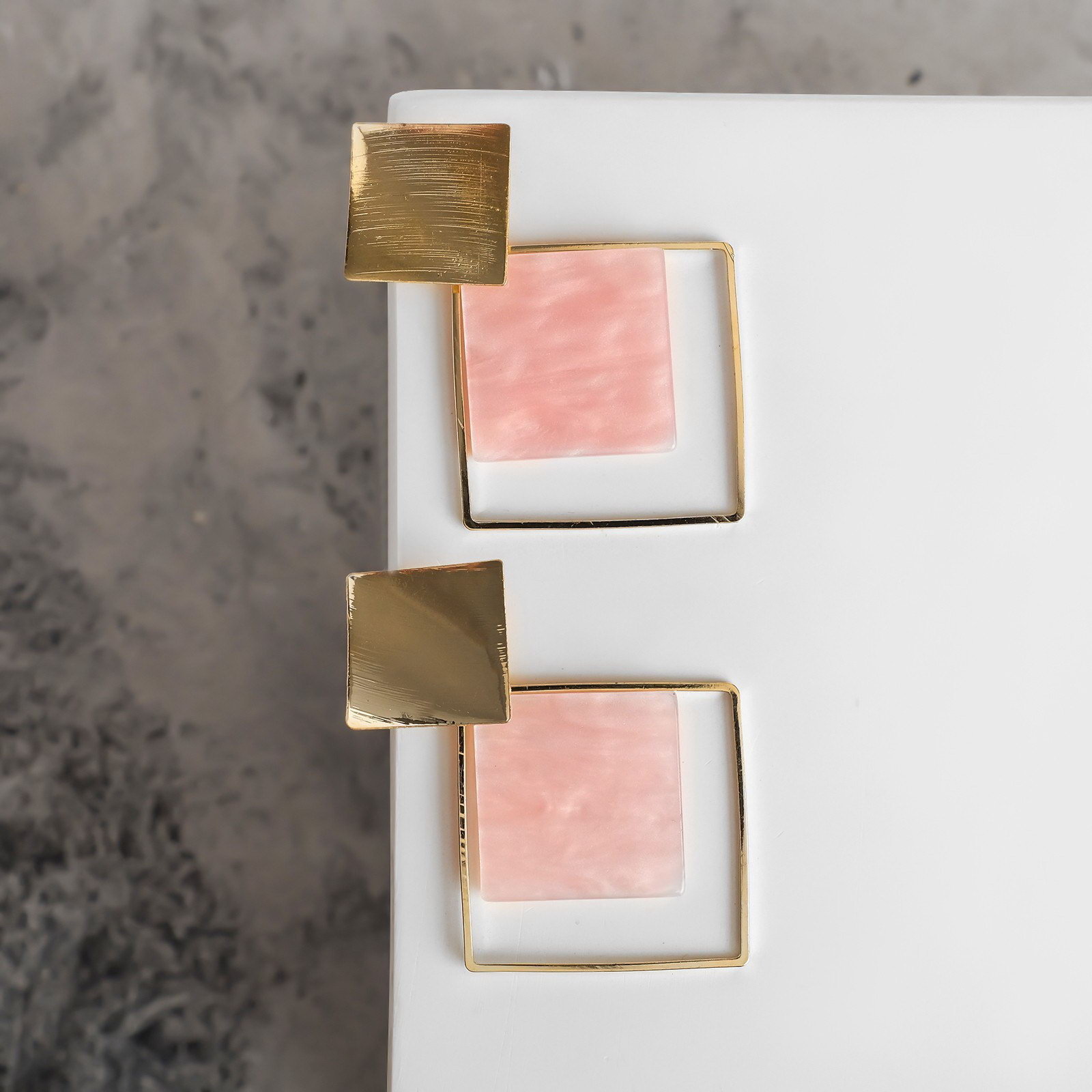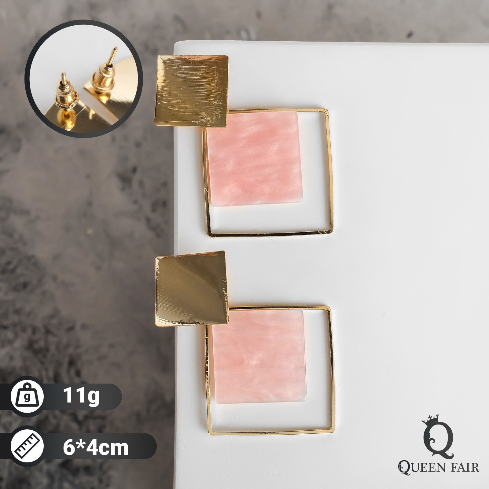 Серьги ассорти "Азелия" ромбы, цвет розовый в золоте, 4x6x0.7 см., Queen fair, Китай