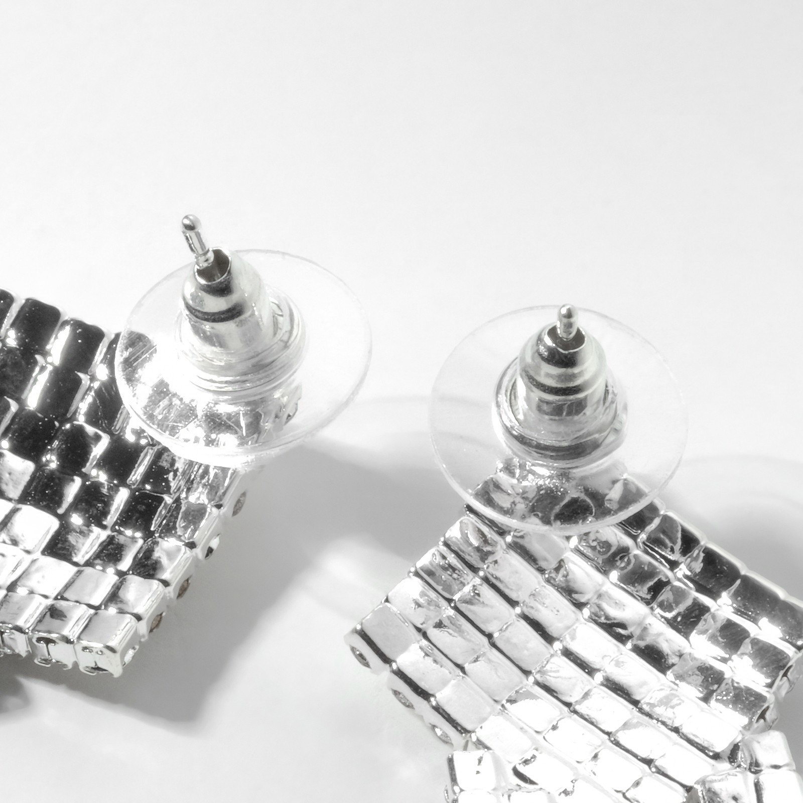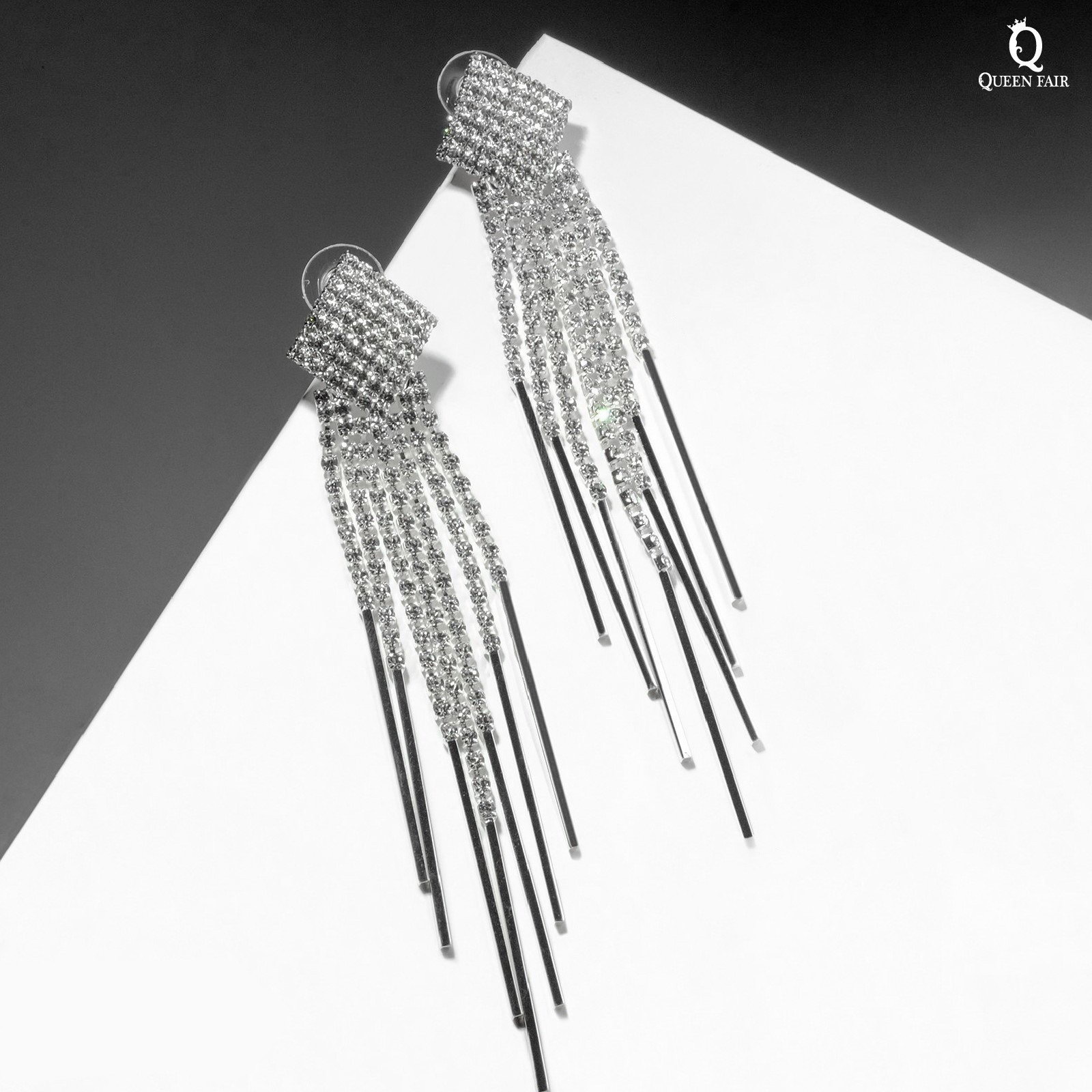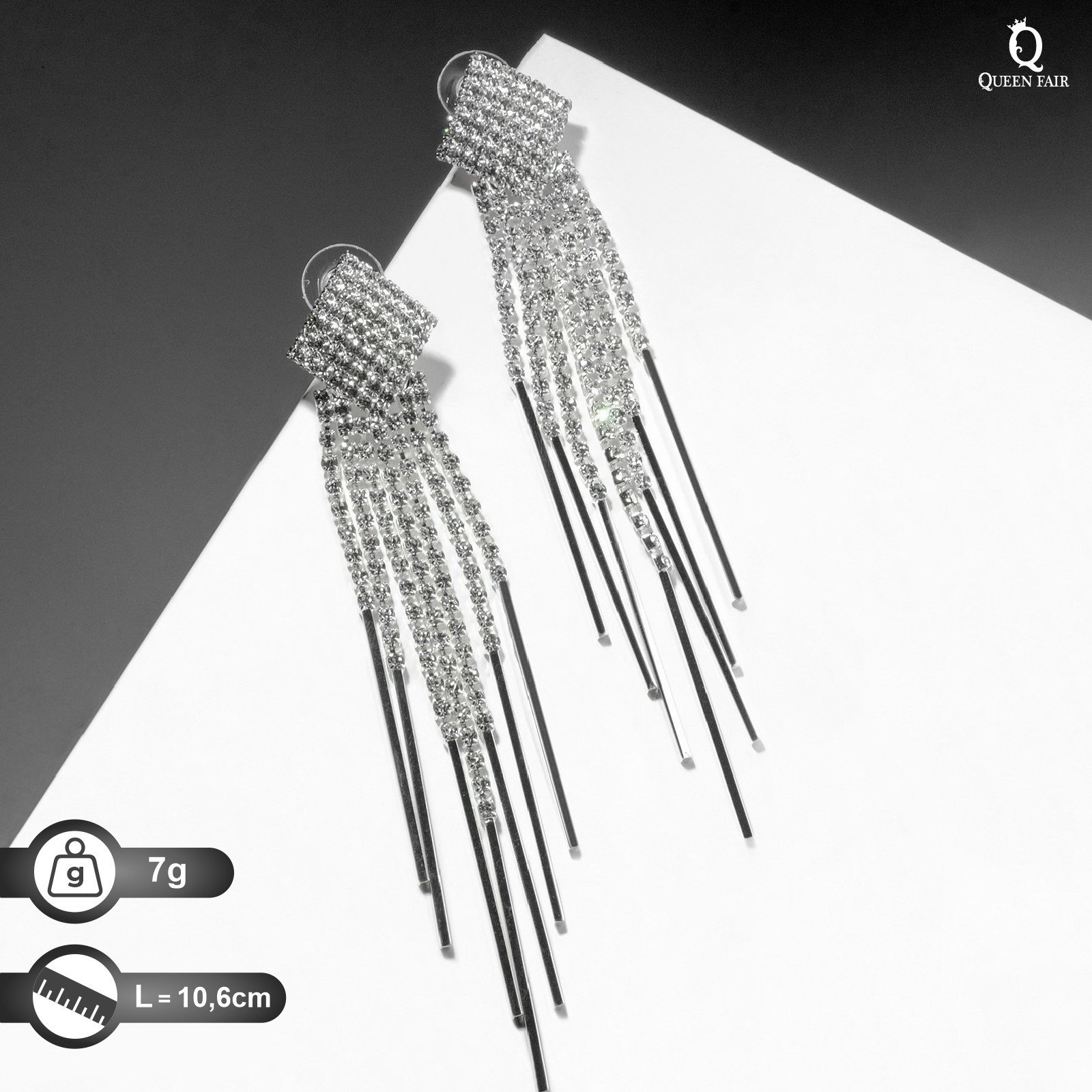 Серьги "Голливуд" ромб и цепочки, цвет белый в серебре, 10.6см, 1.5x10.6x1 см., Queen fair, Китай
