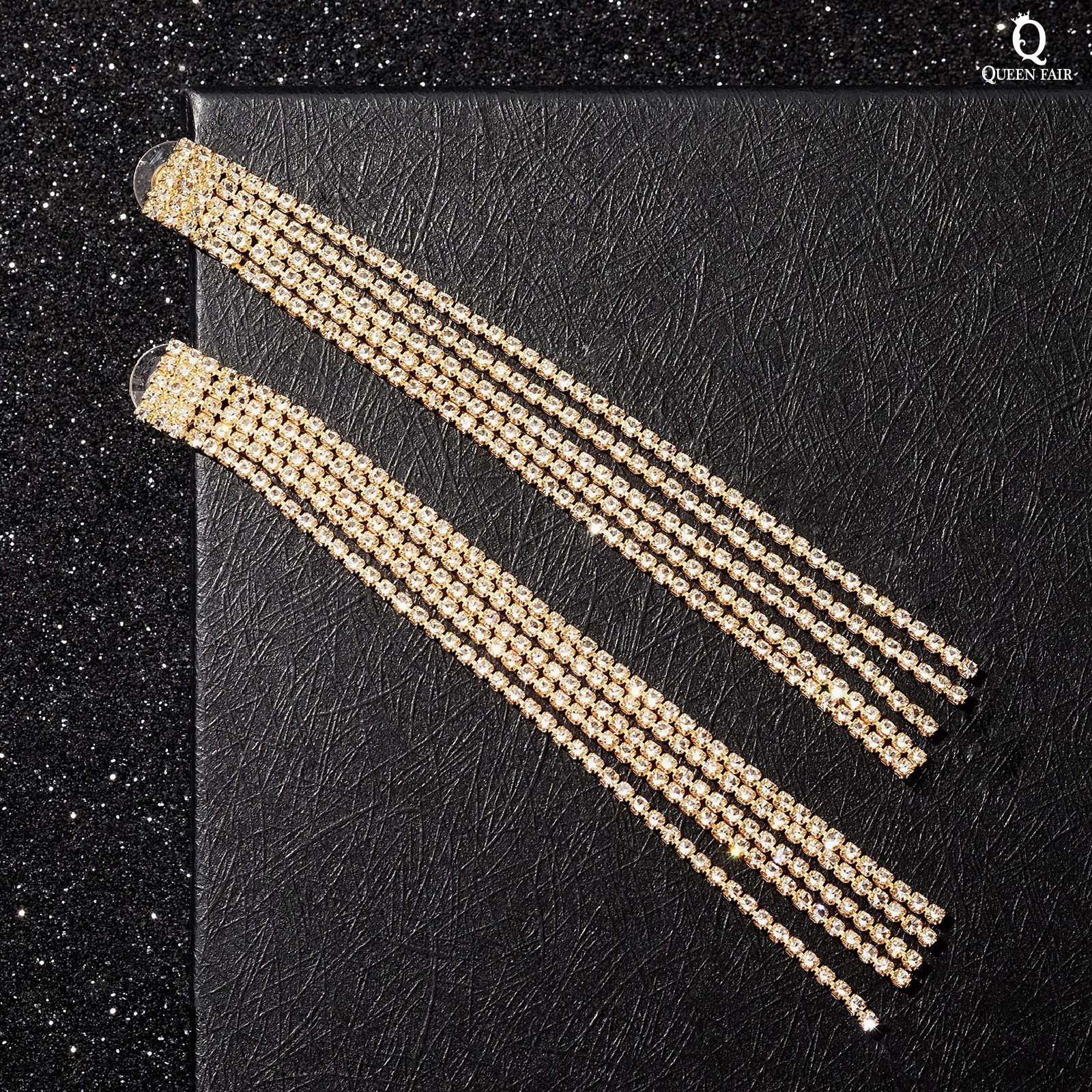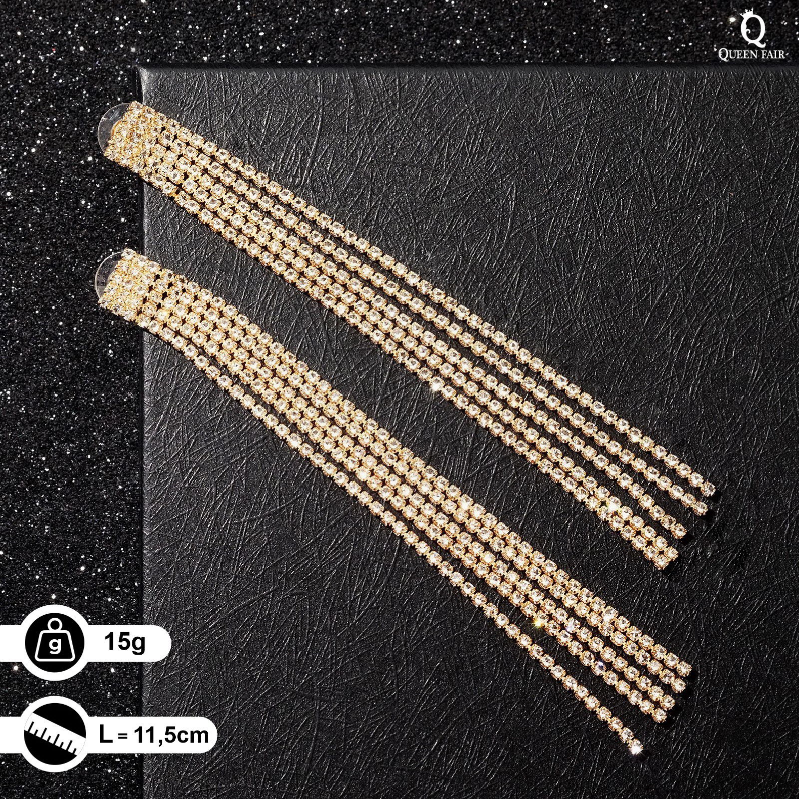 Серьги висячие со стразами "Водопад" прямые нити, цвет белый в золоте, 11.5см, 1x11.5x1 см., Queen fair, Китай