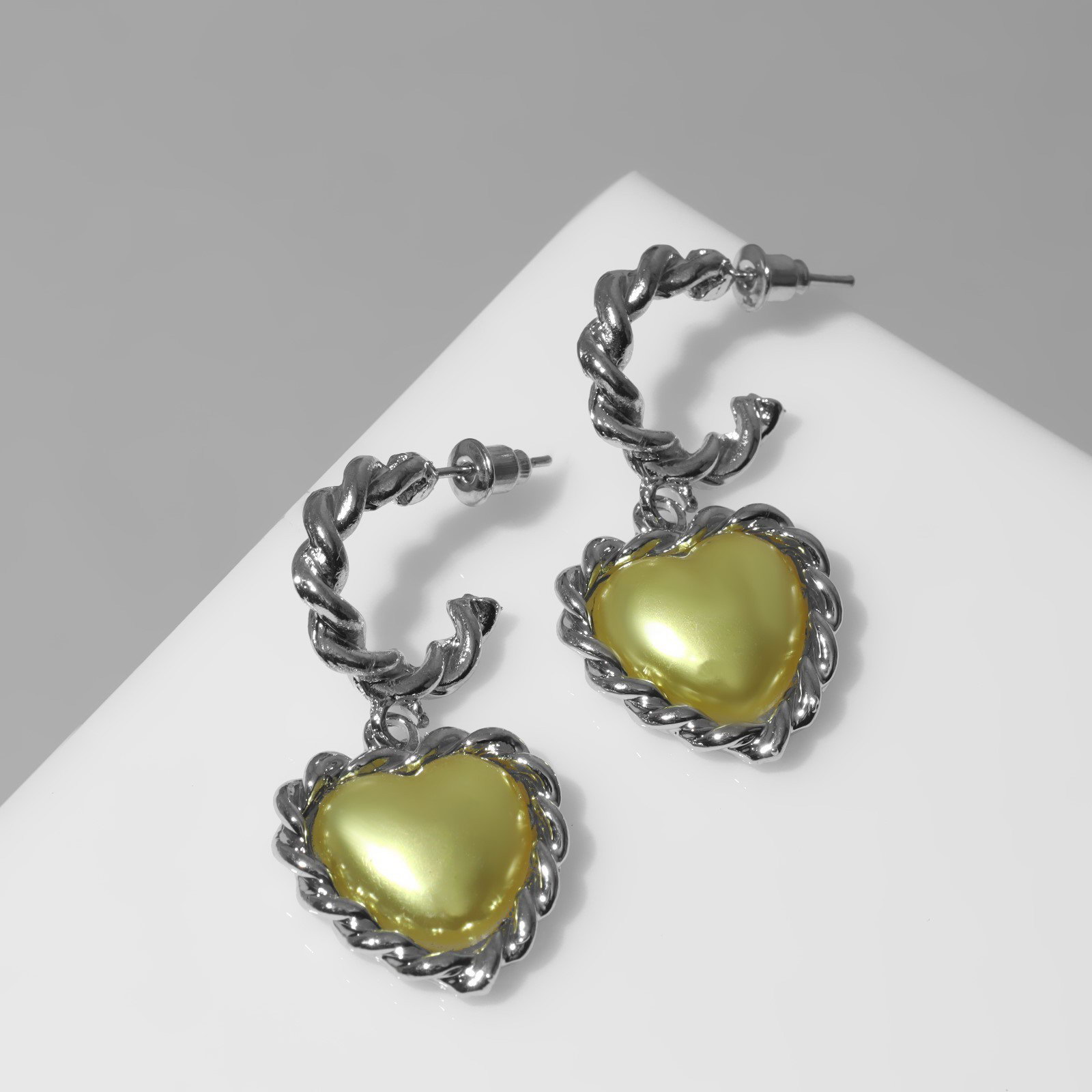 Серьги ассорти "Сердечки" лоза, цвет жёлтый в серебре, 2x4.1x1 см., Queen fair, Китай