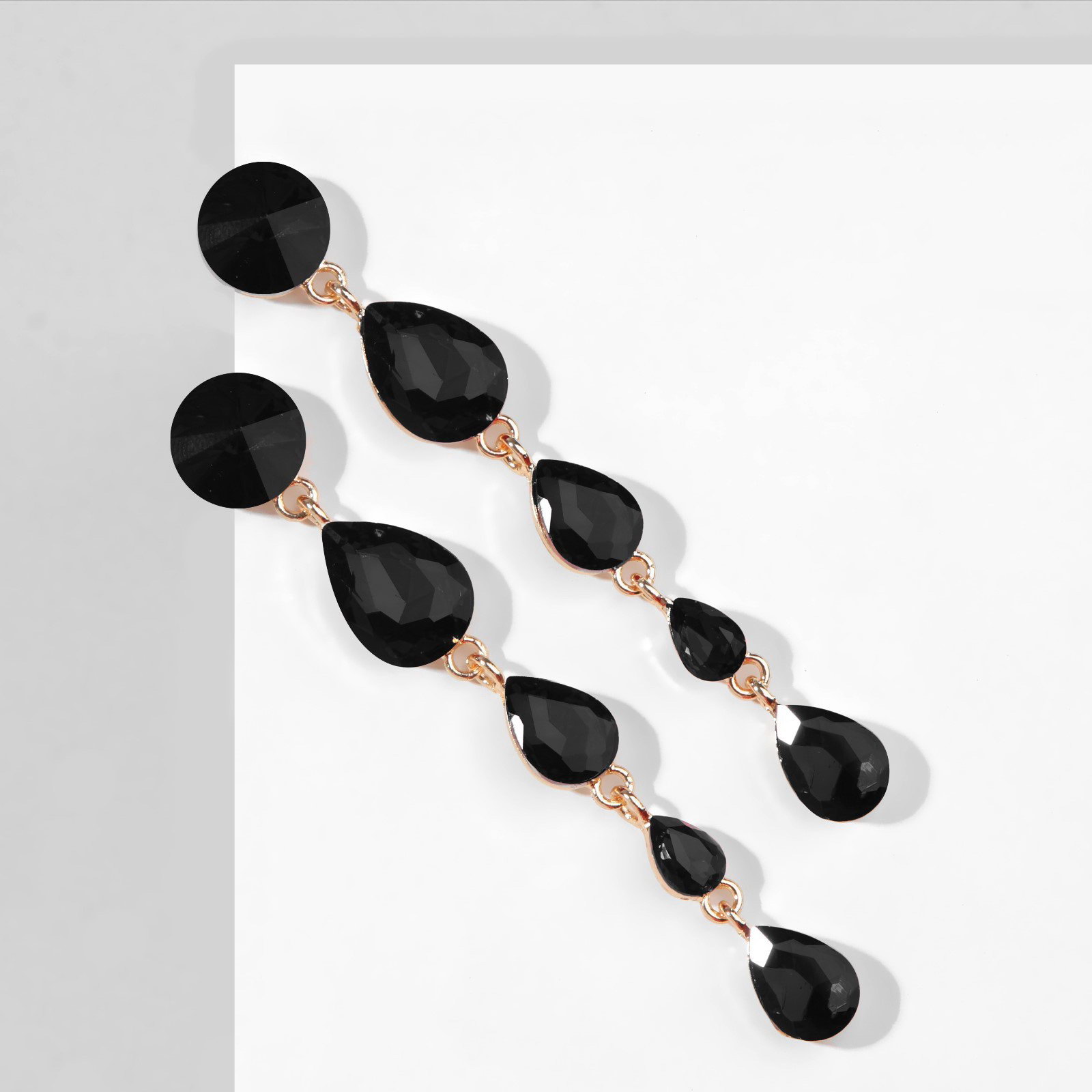 Серьги висячие со стразами "Драгоценность" капли, цвет чёрный в золоте, 9.5 см, 1.2x9.5x0.5 см., QF, Китай