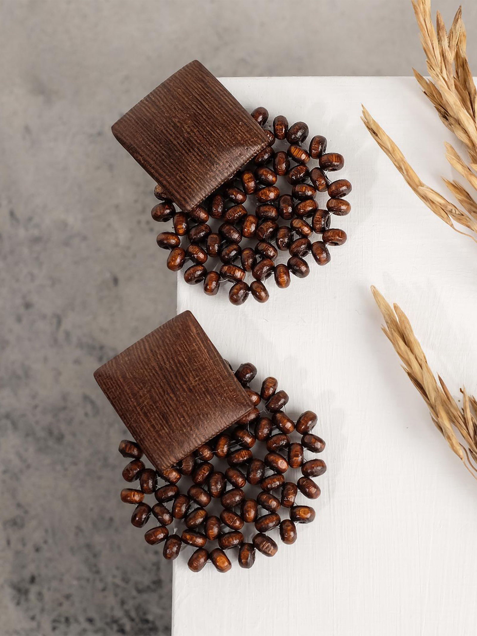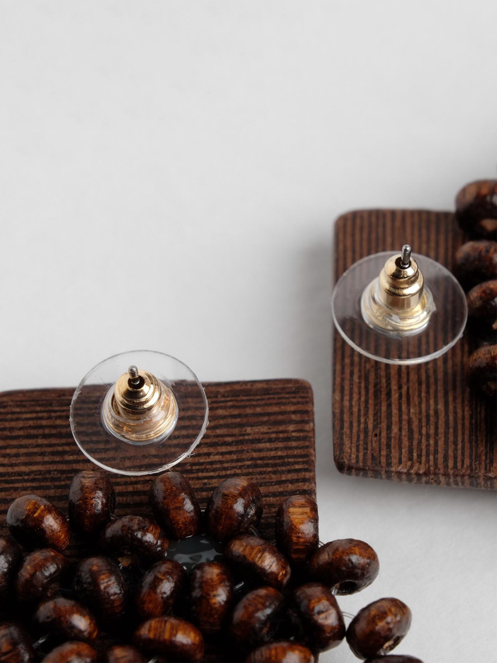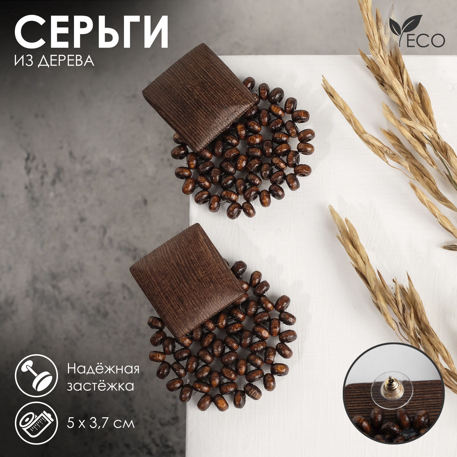 Серьги из дерева "Ваканда" квадрат, цвет коричневый, 3.8x5.4x0.8 см., QF, Китай