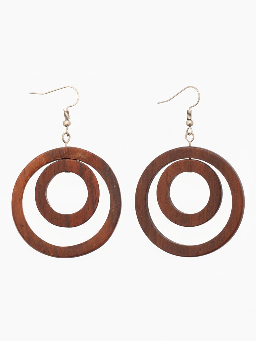 Серьги "Круг", дерево соно, 5 см., Индонезия