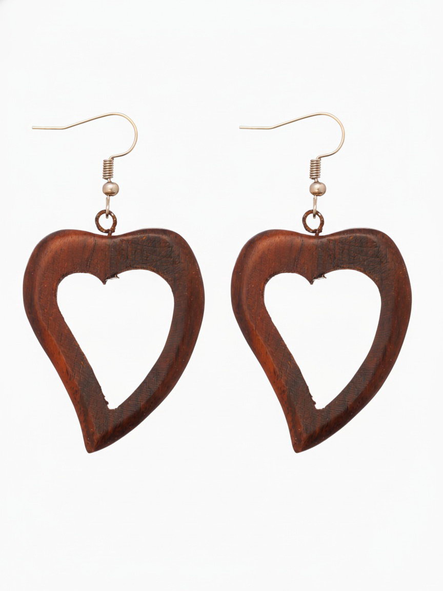 Серьги "Сердце", дерево соно, 5 см., Индонезия