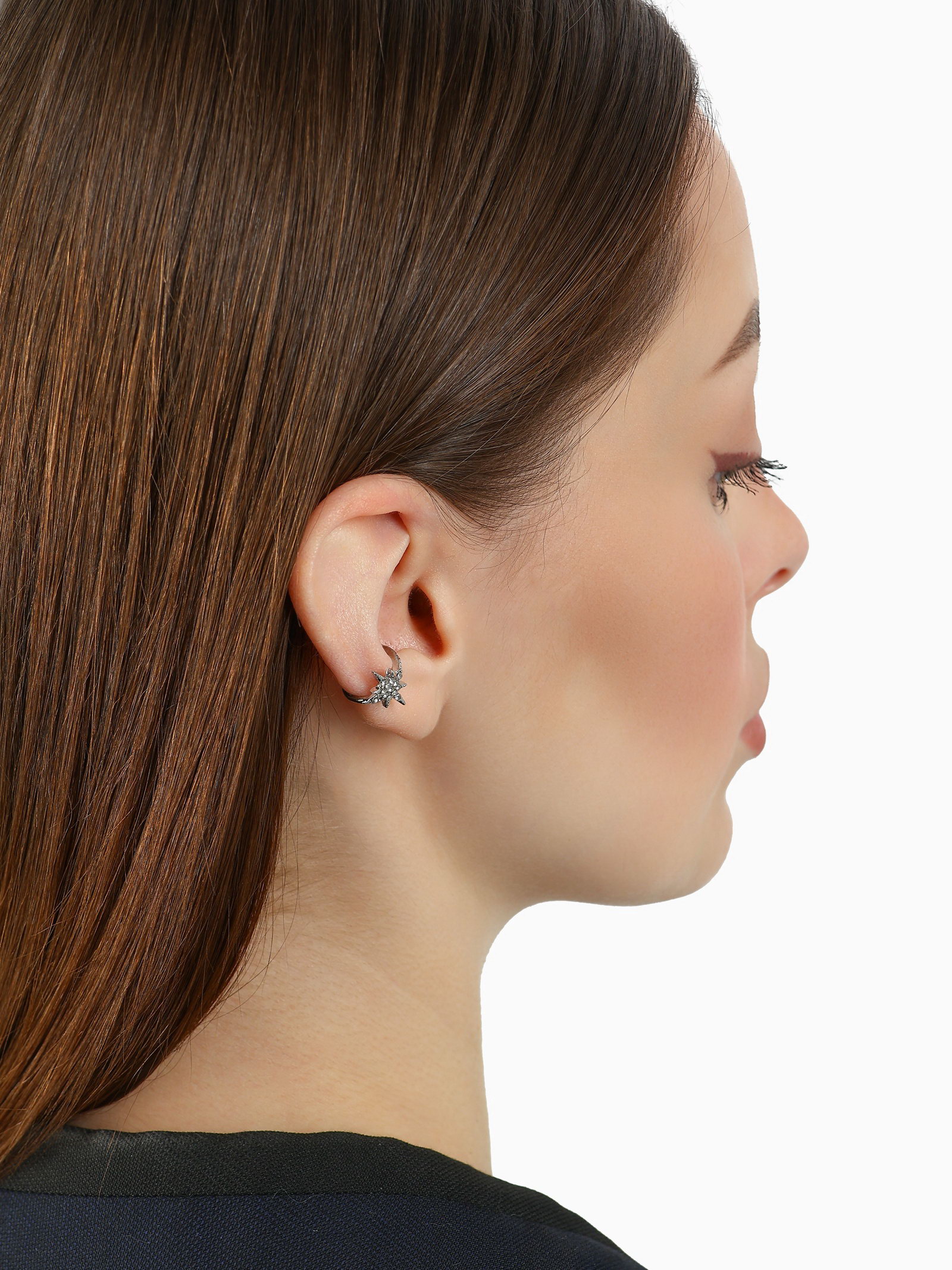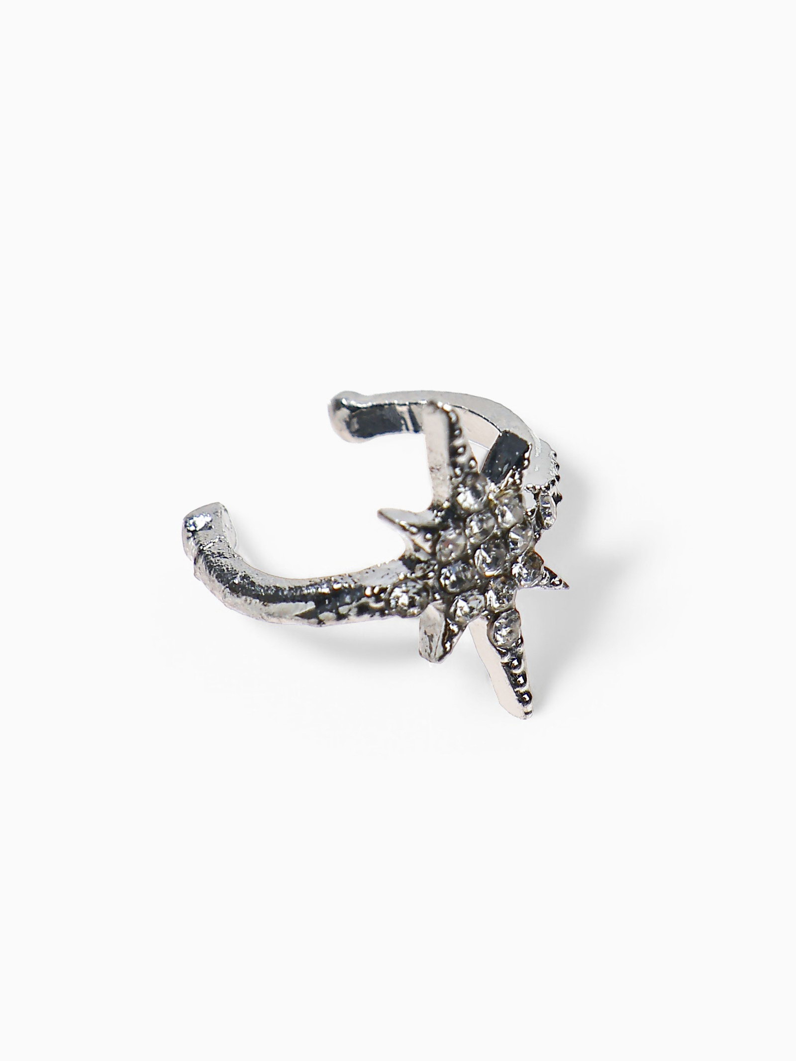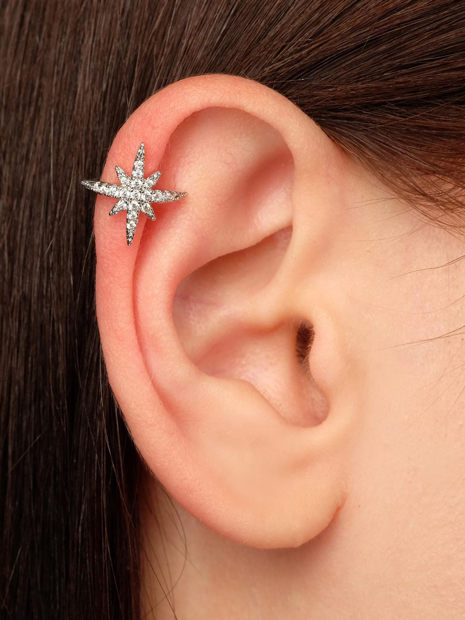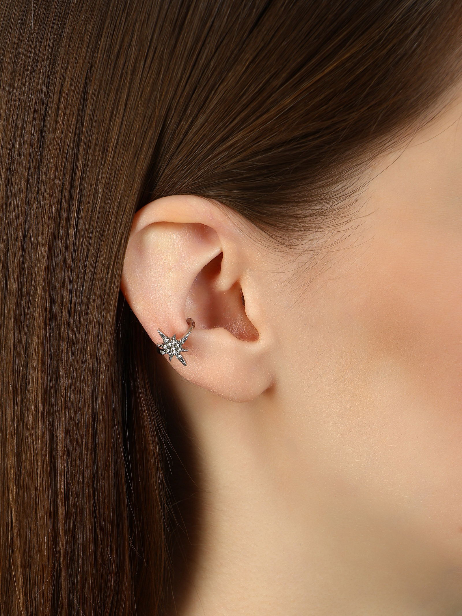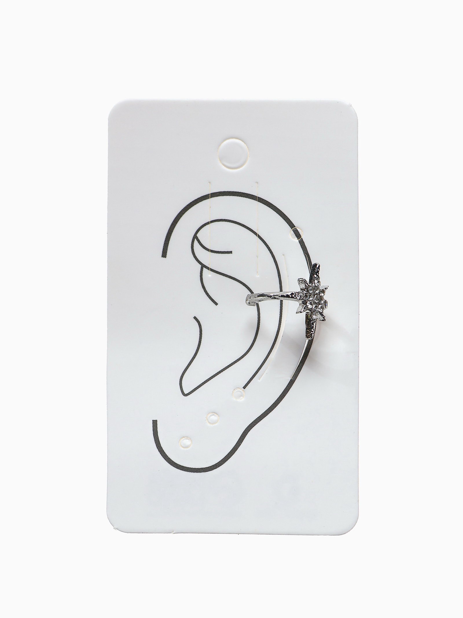 Серьга кафф "Звезда", стразы, цвет белый в серебре, 1.3x1.3x1.3 см., QF, Китай