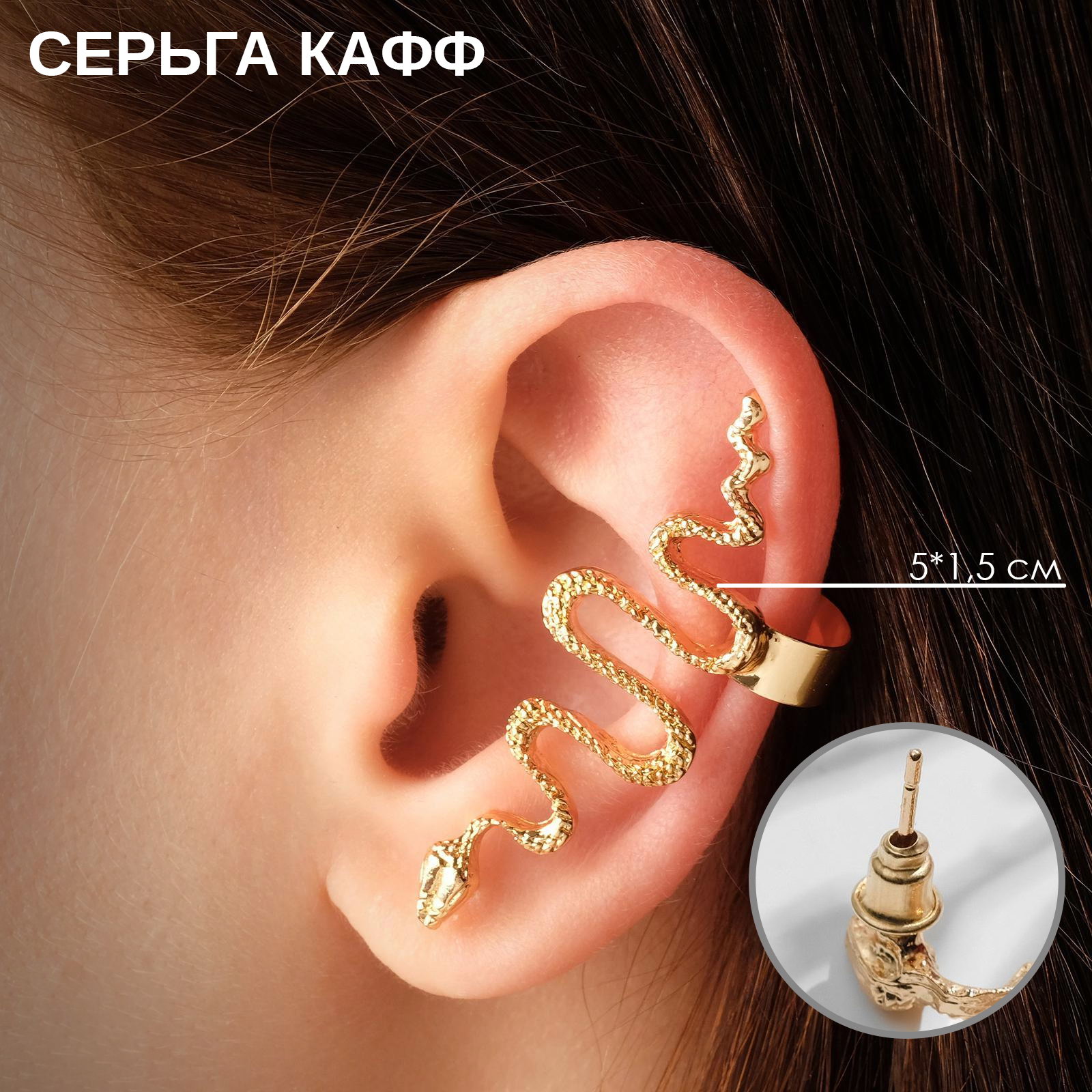 Серьга "Кафф" змея анаконда, цвет золото, 1.5x5x1 см., QF, Китай