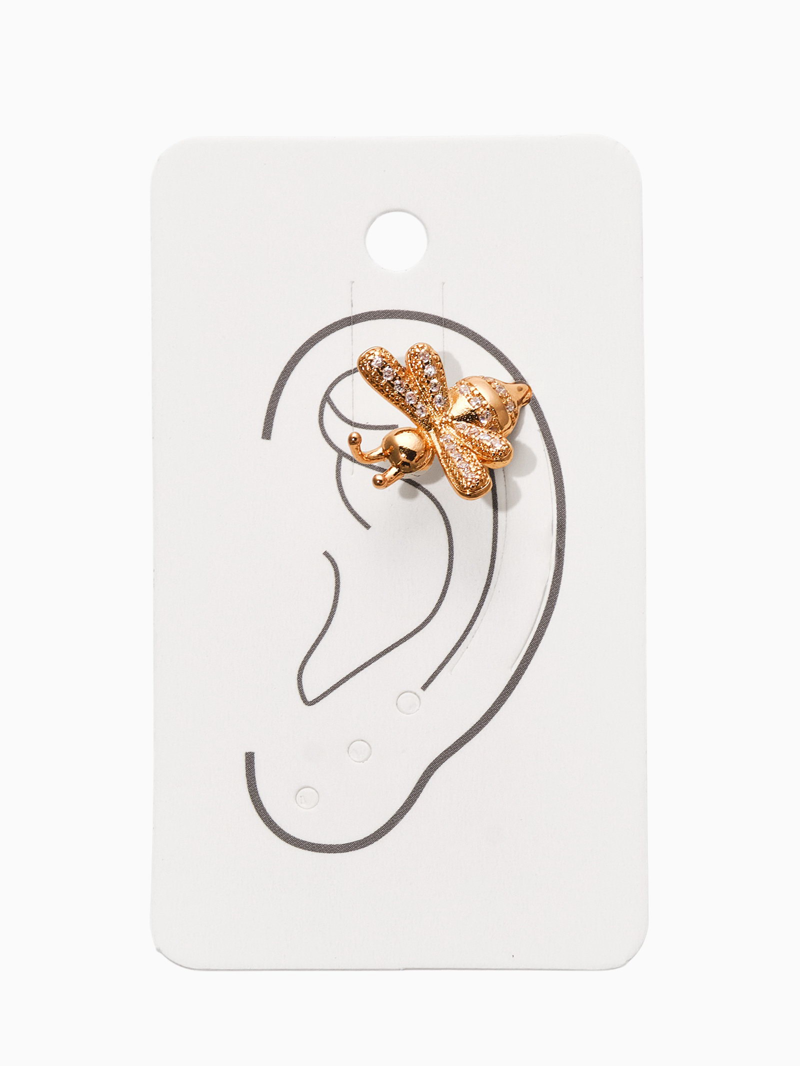 Серьга кафф "Пчела", цвет белая в золоте, 1.5x1.5x1 см., QF, Китай