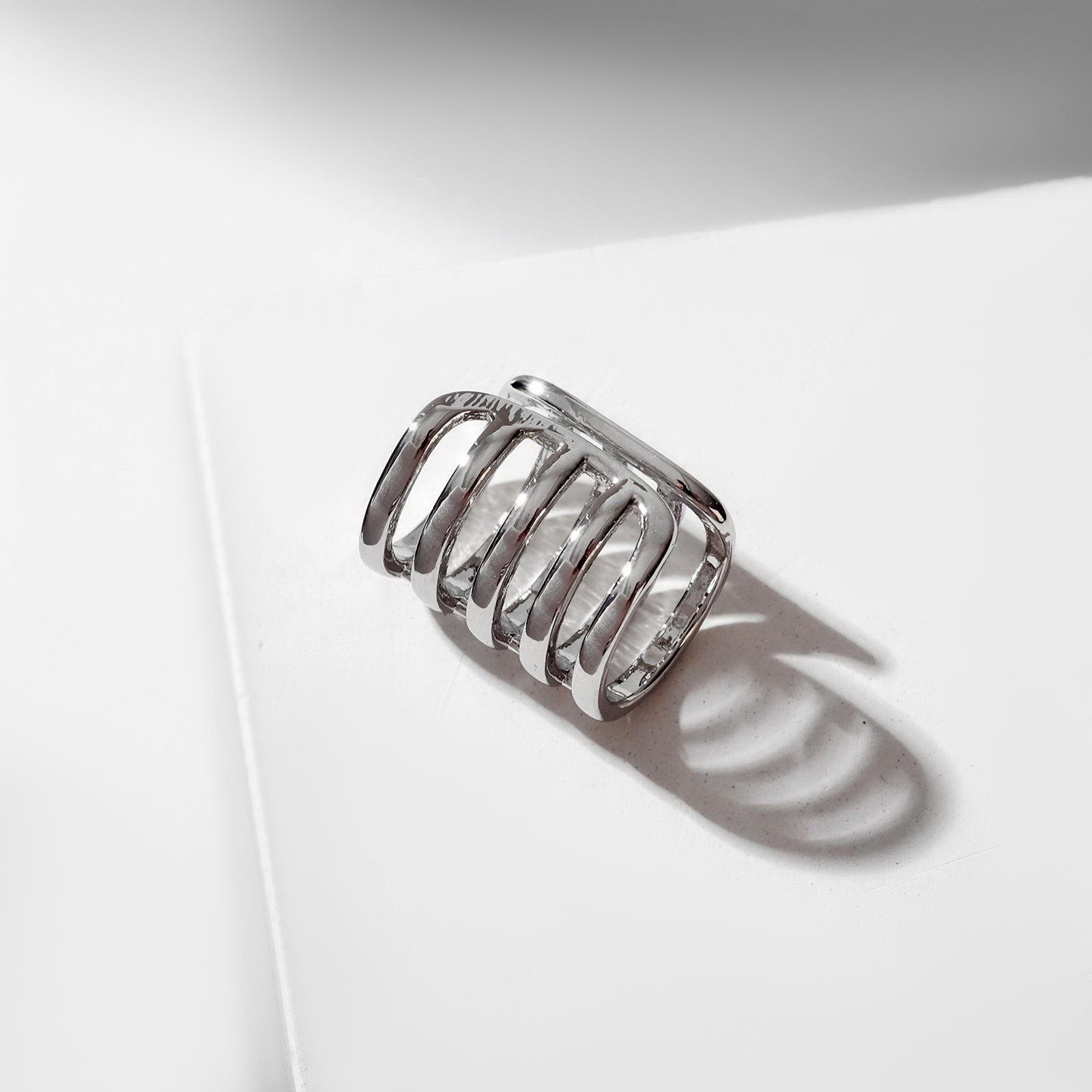 Серьга кафф с пятью полосами, цвет серебро, 1x1.5x1 см., QF, Китай