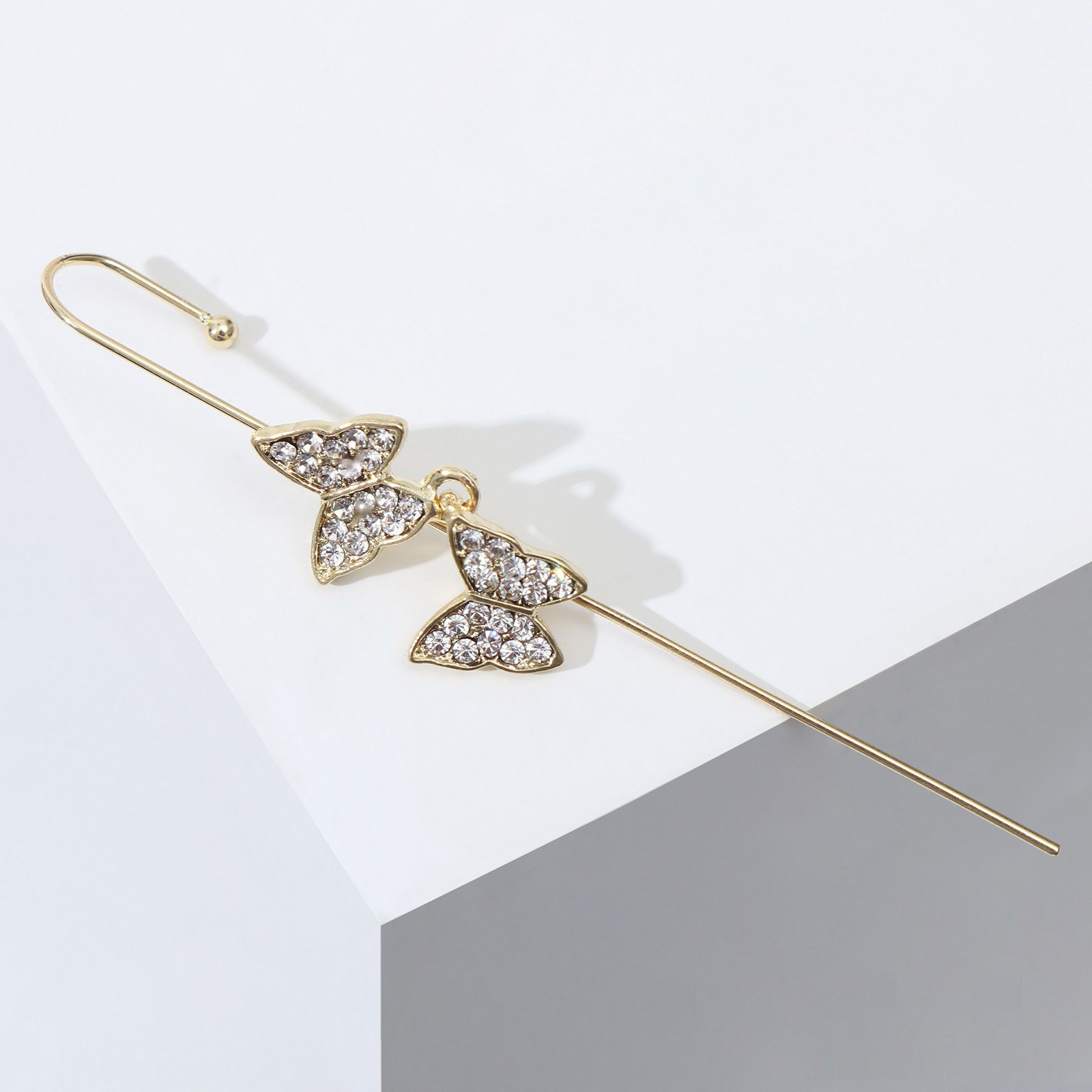 Серьга "Каффа" бабочки, насквозь, цвет белый в золоте, 2.2x7x0.5 см., Китай