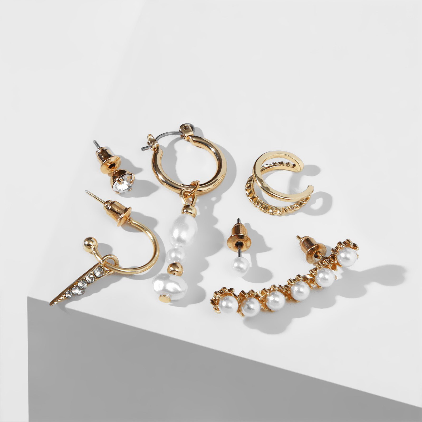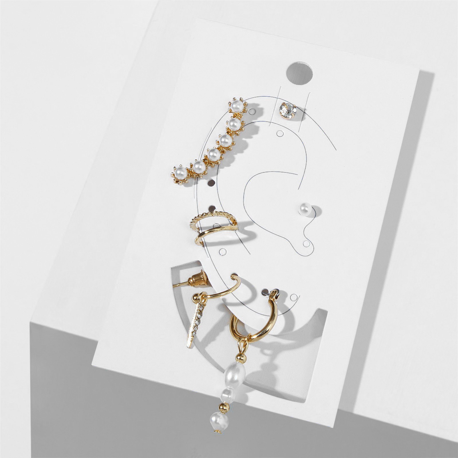 Набор серьги и кафф "Настроение", жемчужинки и стразы, цвет белый в золоте, 4x1.5x0.5 см., Queen fair, Китай