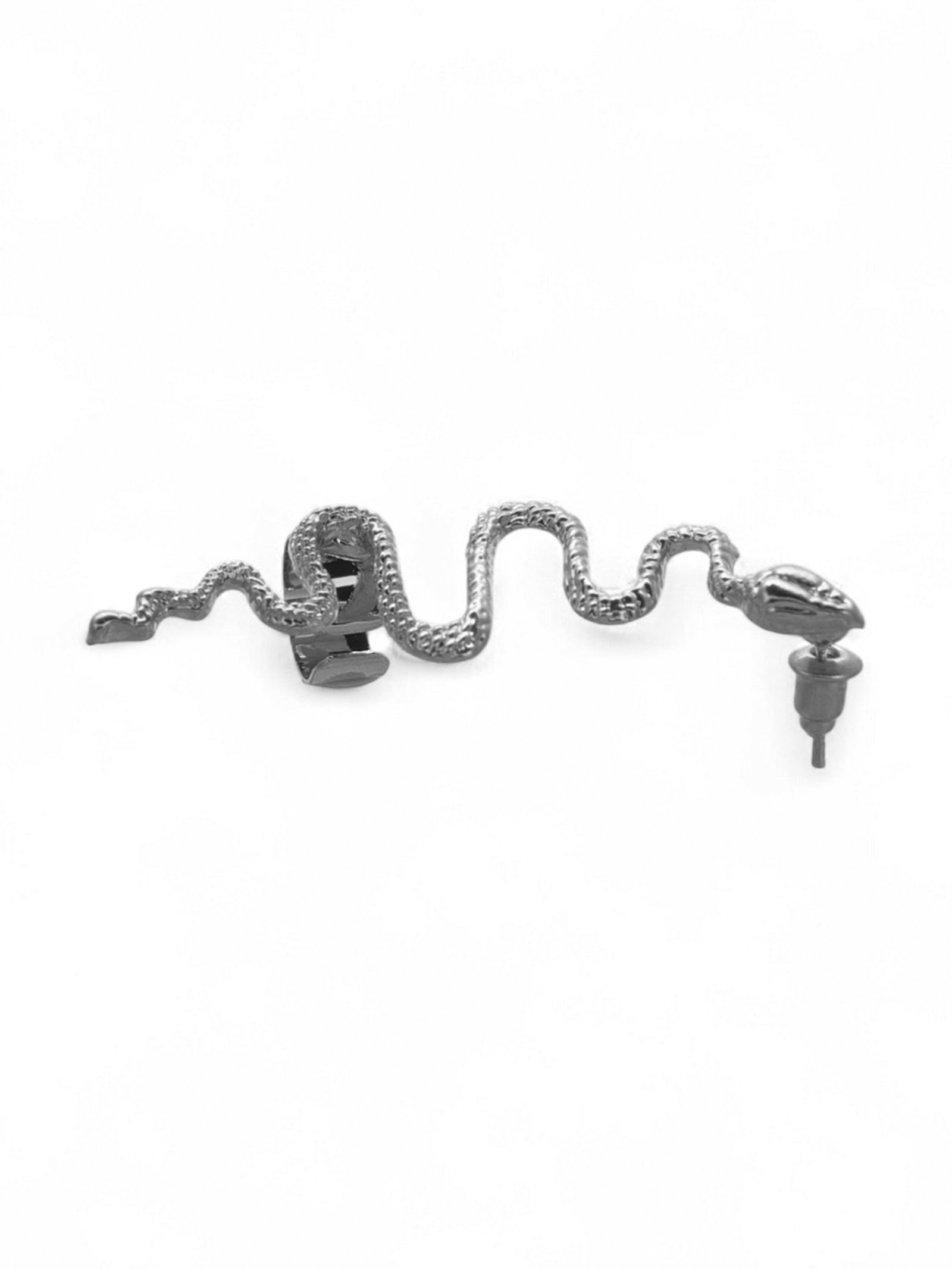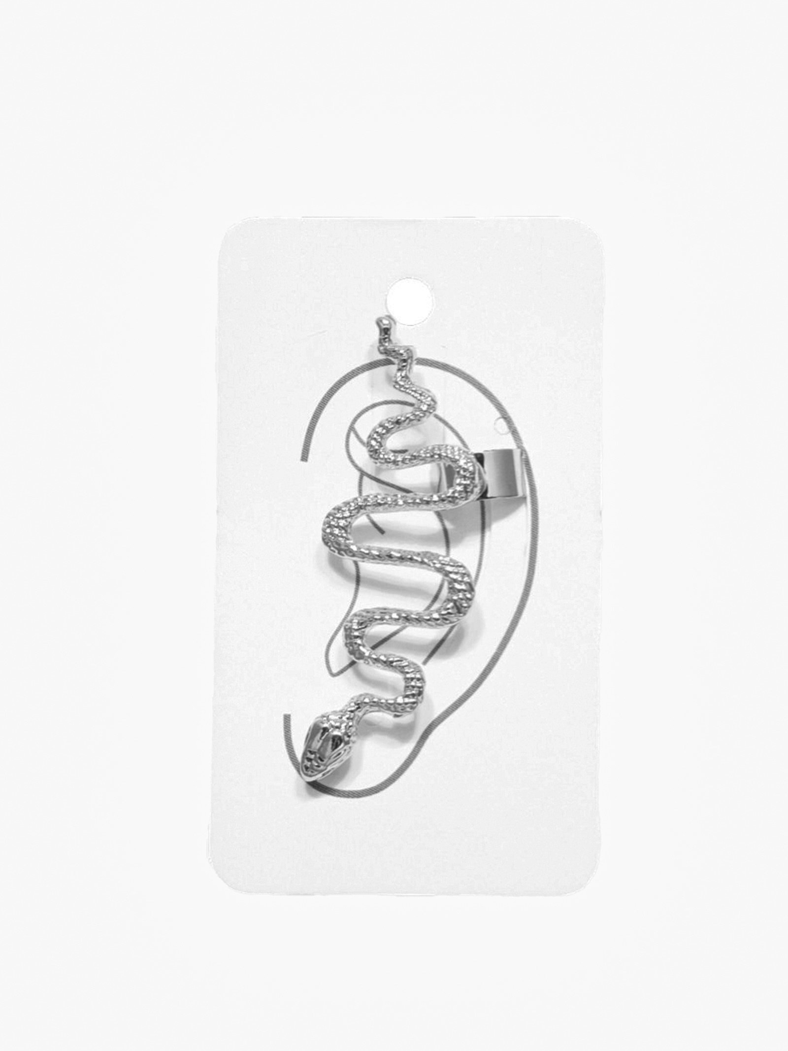 Серьга "Кафф" змея анаконда, цвет серебро, 1.5x5x1 см., QF, Китай