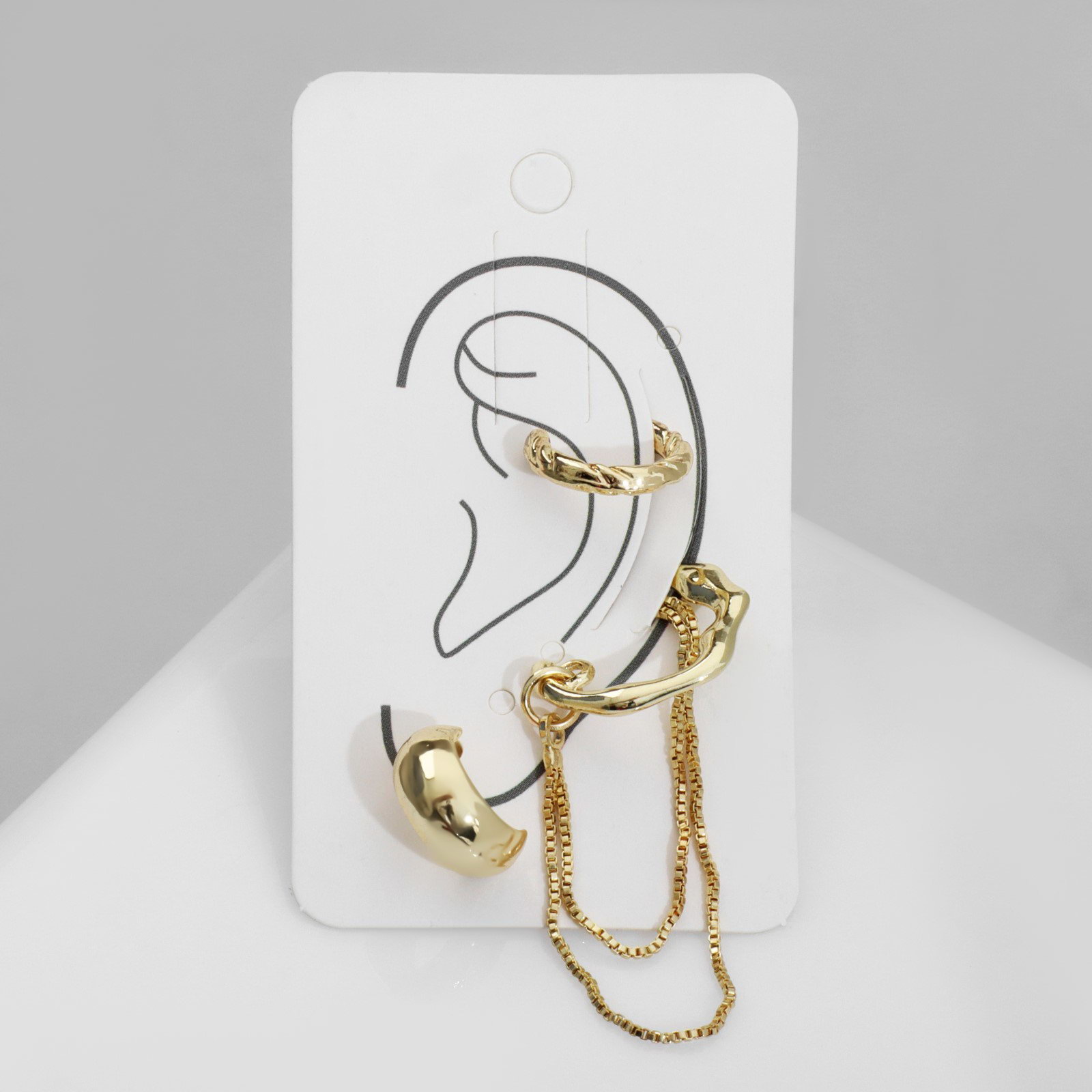 Набор серег и кафф "Классика", цвет золото, 1.8x5.4x0.6 см., QF, Китай