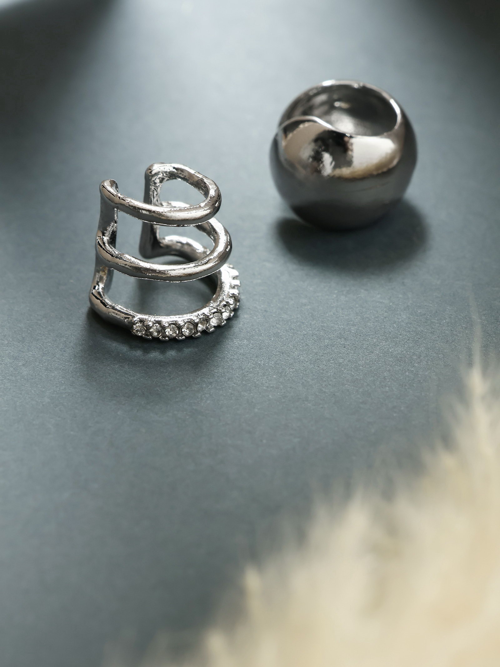 Серьги каффы, набор 2 шт. объёмные, цвет серебро, 5.5x8.5x1 см., QF, Китай