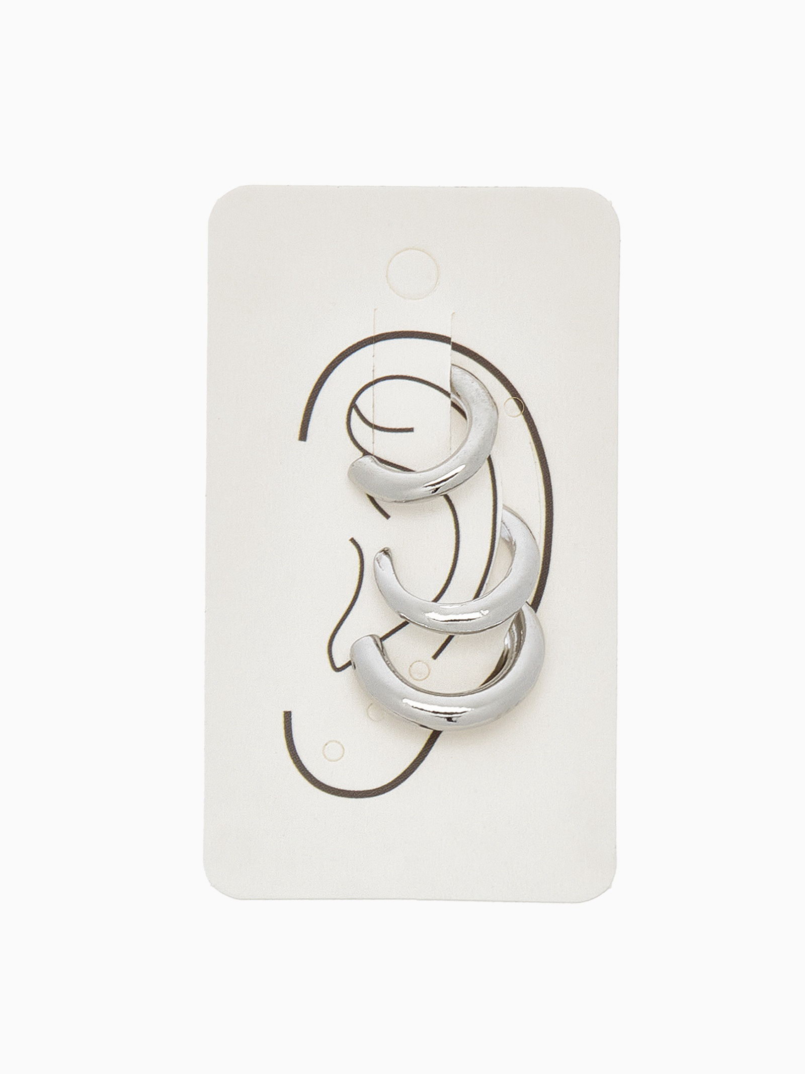 Серьги каффы "Трио", набор 3 шт. цвет серебро, 5.5x8.5x1 см., QF, Китай