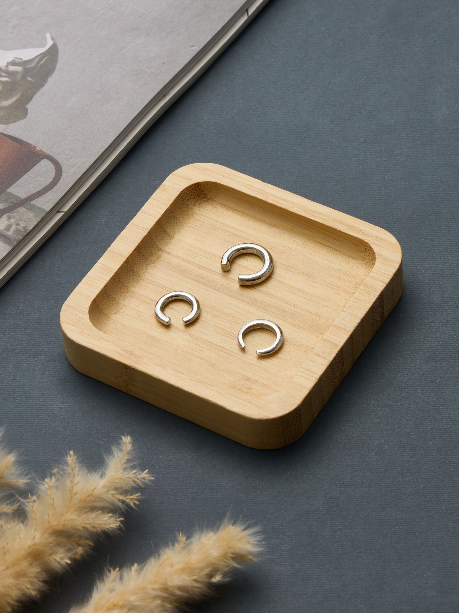 Адресат: Дочке, Маме, Подруге Тематика праздника: 14 Февраля, 8 Марта, День рождения Вид: Серьги, Серьги Размер упаковки: 4 x 1 x 7 см. Материал основания: Металл Для кого: Для женщины Материал основы: Металл Вид застёжки: Кафф без прокола Составляющие набора: Серьги Тематика подарка: Бижутерия Возраст: Для взрослых Вставка/Подвеска: Без вставок Набор: Да Длина, см: 8.5 Бижутерия с открыткой: Нет Цвет: Серебристый Тематика: Минимализм Цвет фурнитуры: Серебряный Цвет фурнитуры: Серебряный tnved: 7117190000 Погрузитесь в мир утончённой элегантности с набором серьг-каффов "Трио" в нежном серебристом окрасе. Эти прекрасные украшения длиной 8,5 см идеально дополнят любой образ, добавляя штрих современного минимализма в ваш стиль. Вас приятно удивит, насколько универсальны эти серьги, которые подойдут как для повседневной жизни, так и для особых случаев. Изготовленные из высококачественного металла и пластика, серьги предлагают сочетание стиля и комфорта. Безопасный вид застёжки кафф без прокола позволяет носить их даже тем, у кого нет проколотых ушей. Это делает серьги идеальным выбором для любой женщины, стремящейся к новым модным экспериментам.