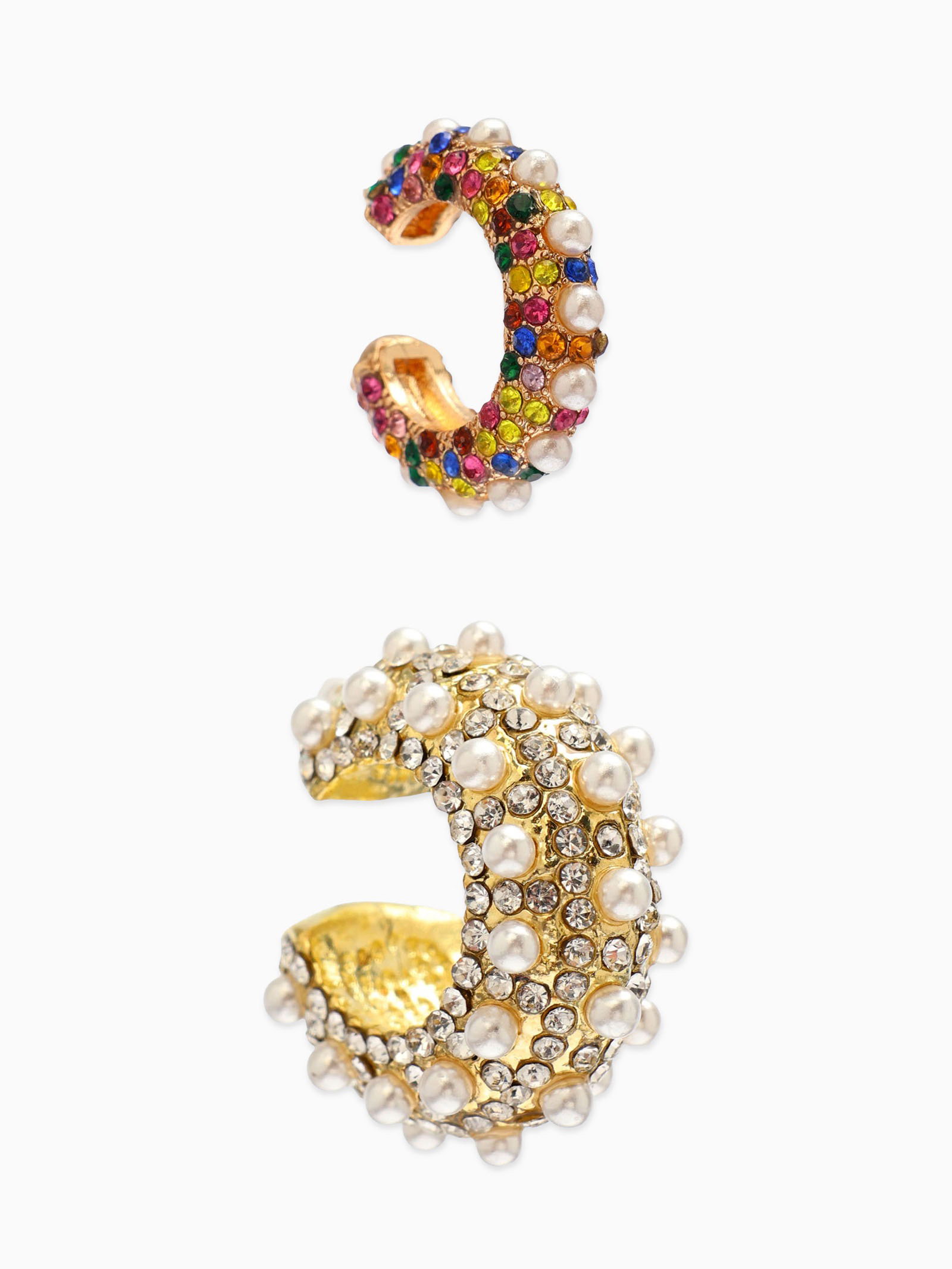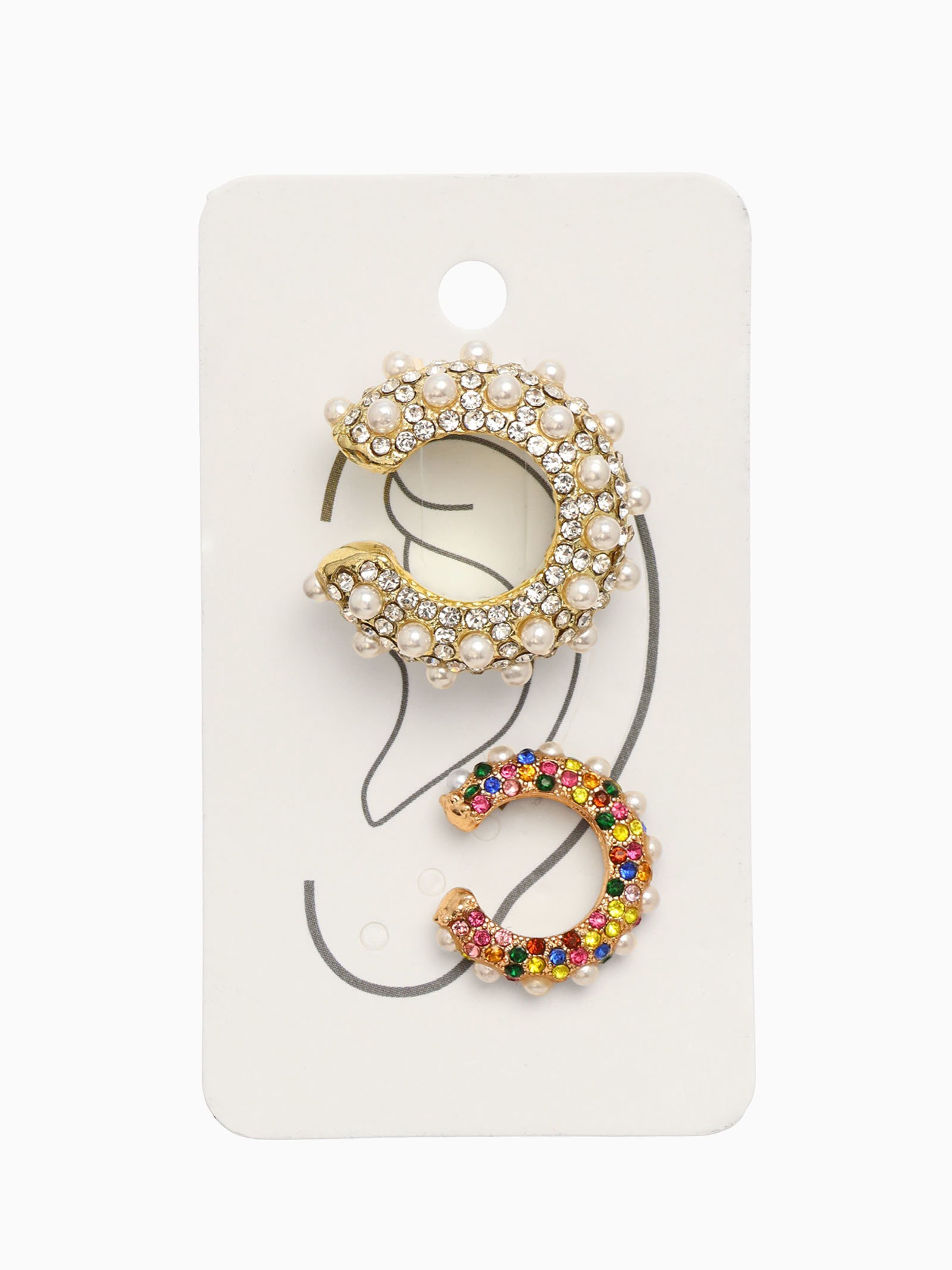 Серьги кафф "Бублики", набор 2 шт. цветные, 3.5x3.5x1.5 см., QF, Китай