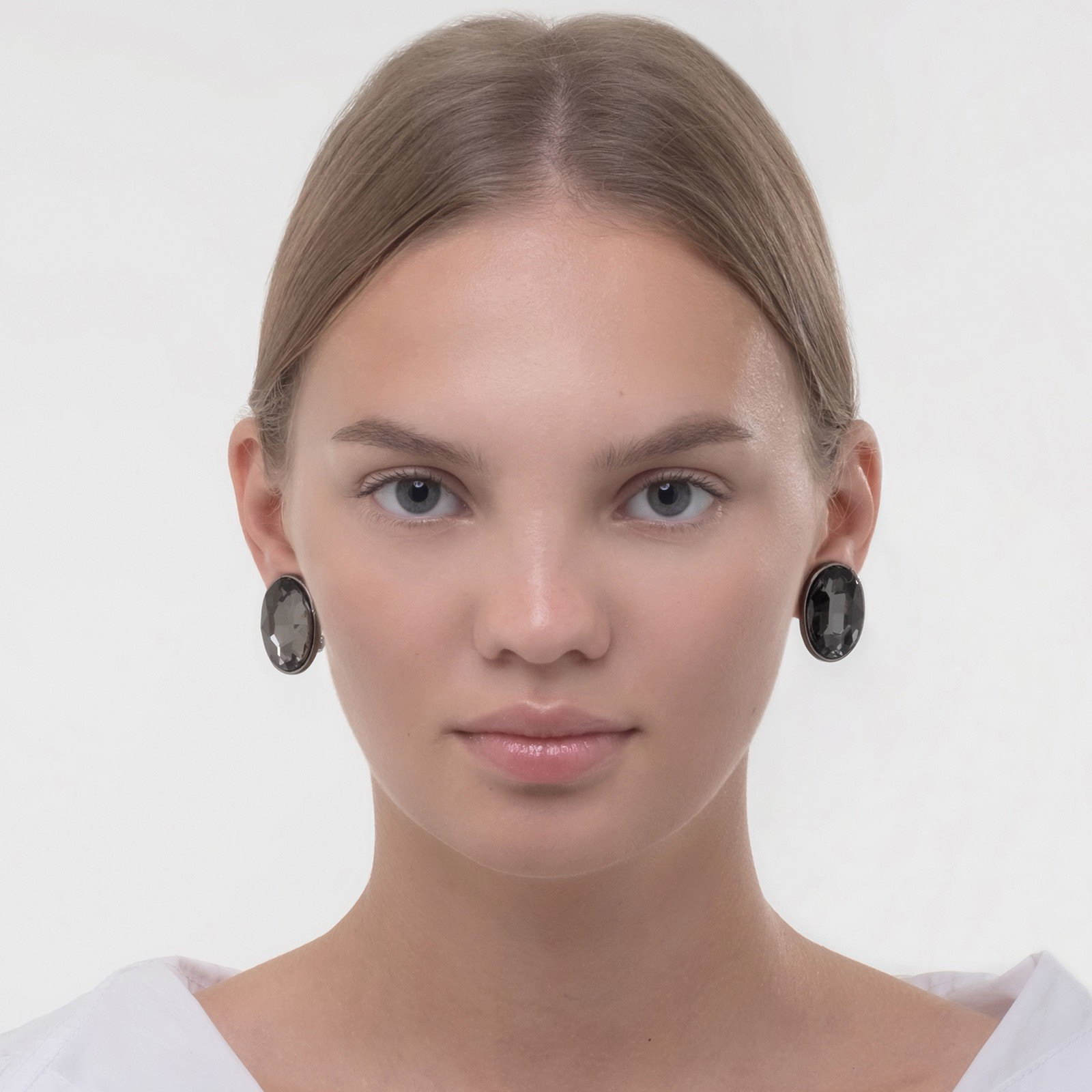 Клипсы "Вечеринка" овалы, цвет серый в сером металле, 2x2.5x1 см., Queen fair, Китай