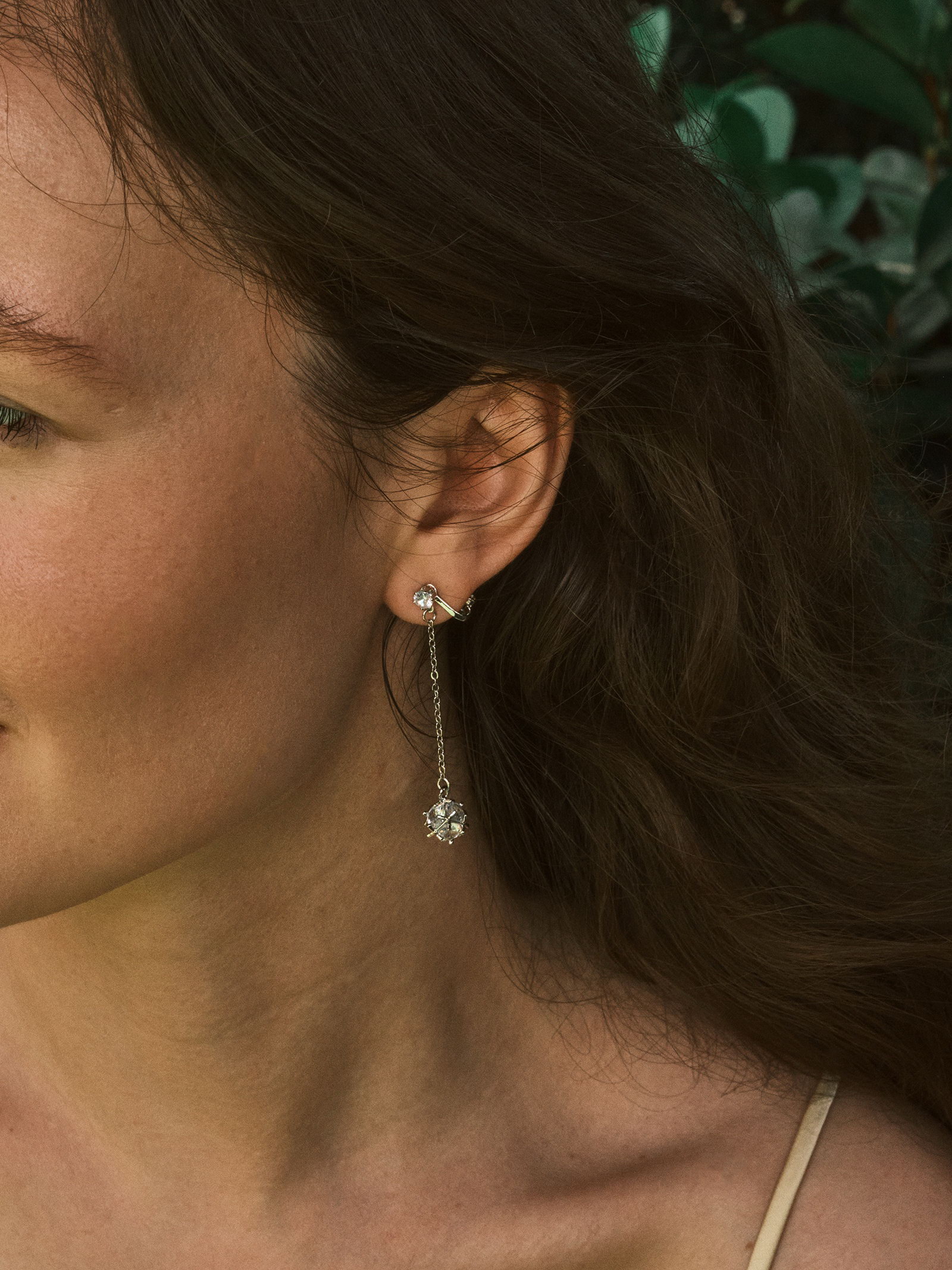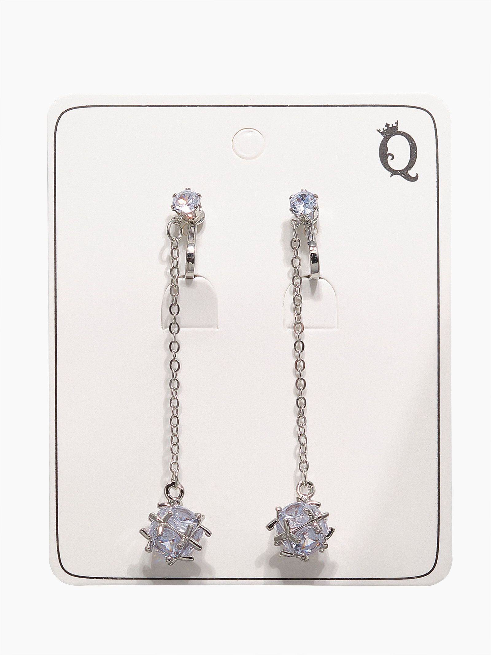 Клипсы для ушей "Чувства", на цепочке, шар 10, цвет белый в серебре, 1x5.8x1 см., QF, Китай