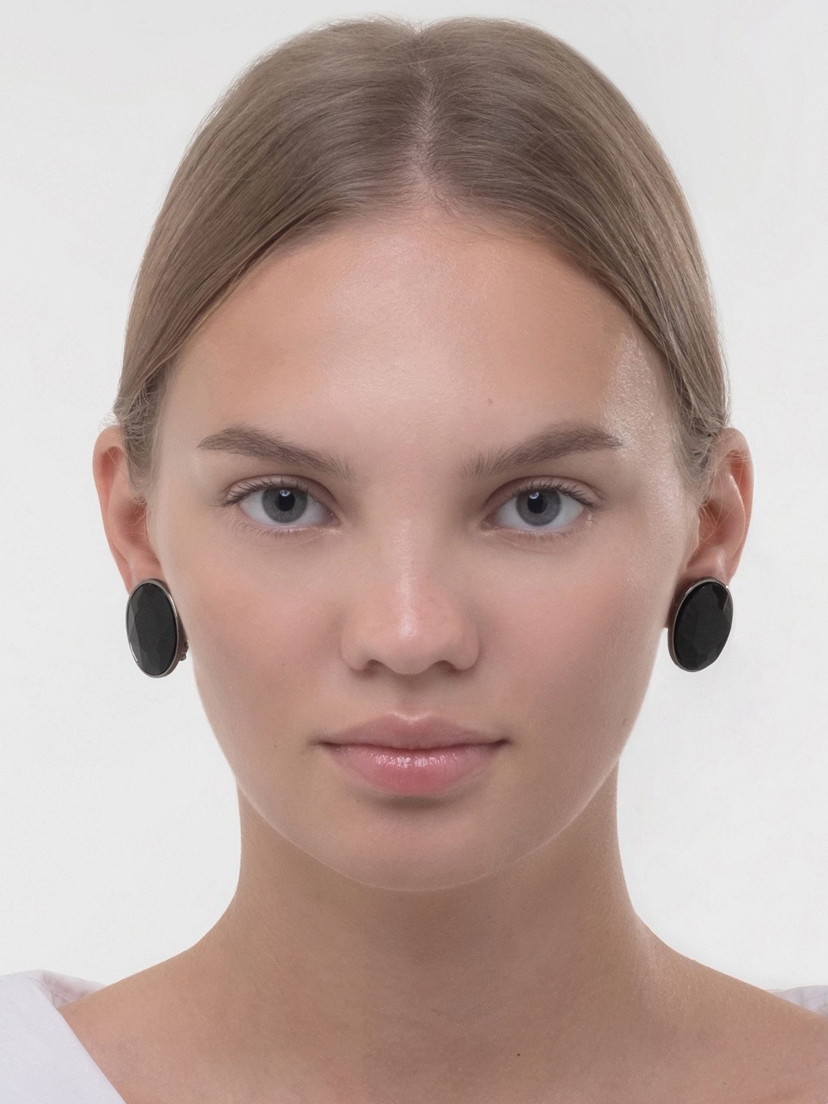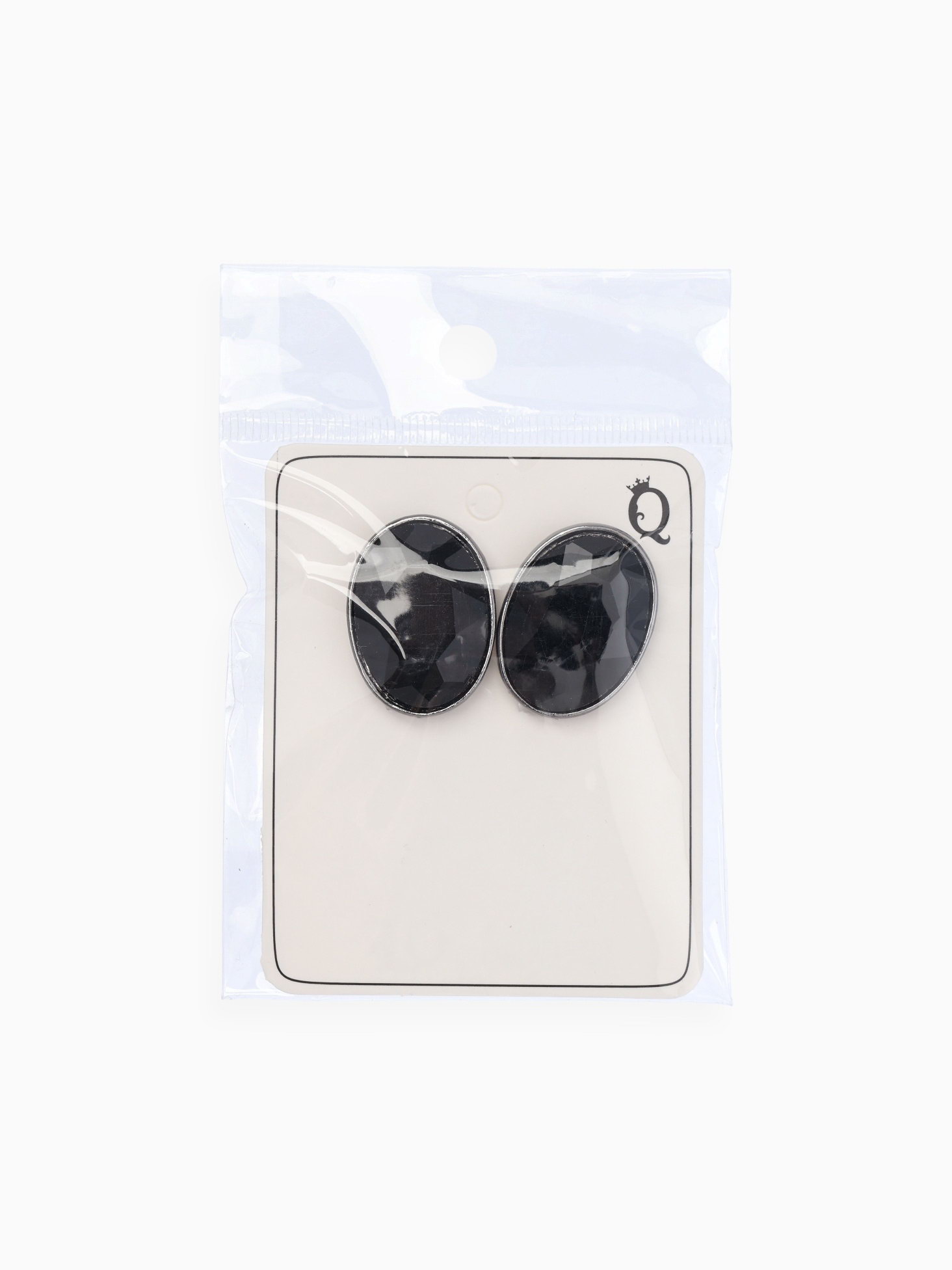 Серьги клипсы для ушей "Овал", цвет серебро, чёрный, 2x2.5x1 см., QF, Китай