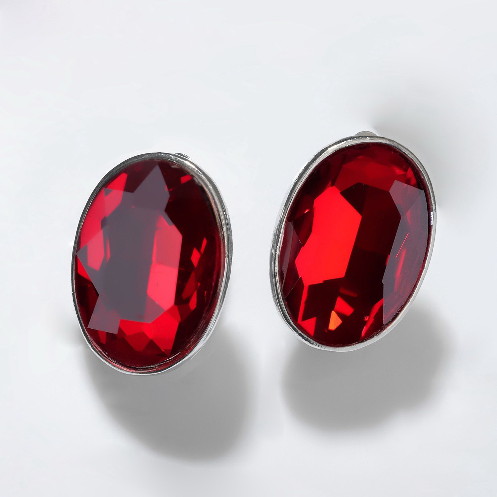 Клипсы "Вечеринка" овалы, цвет красный в серебре, 2x2.5x1 см., QF, Китай