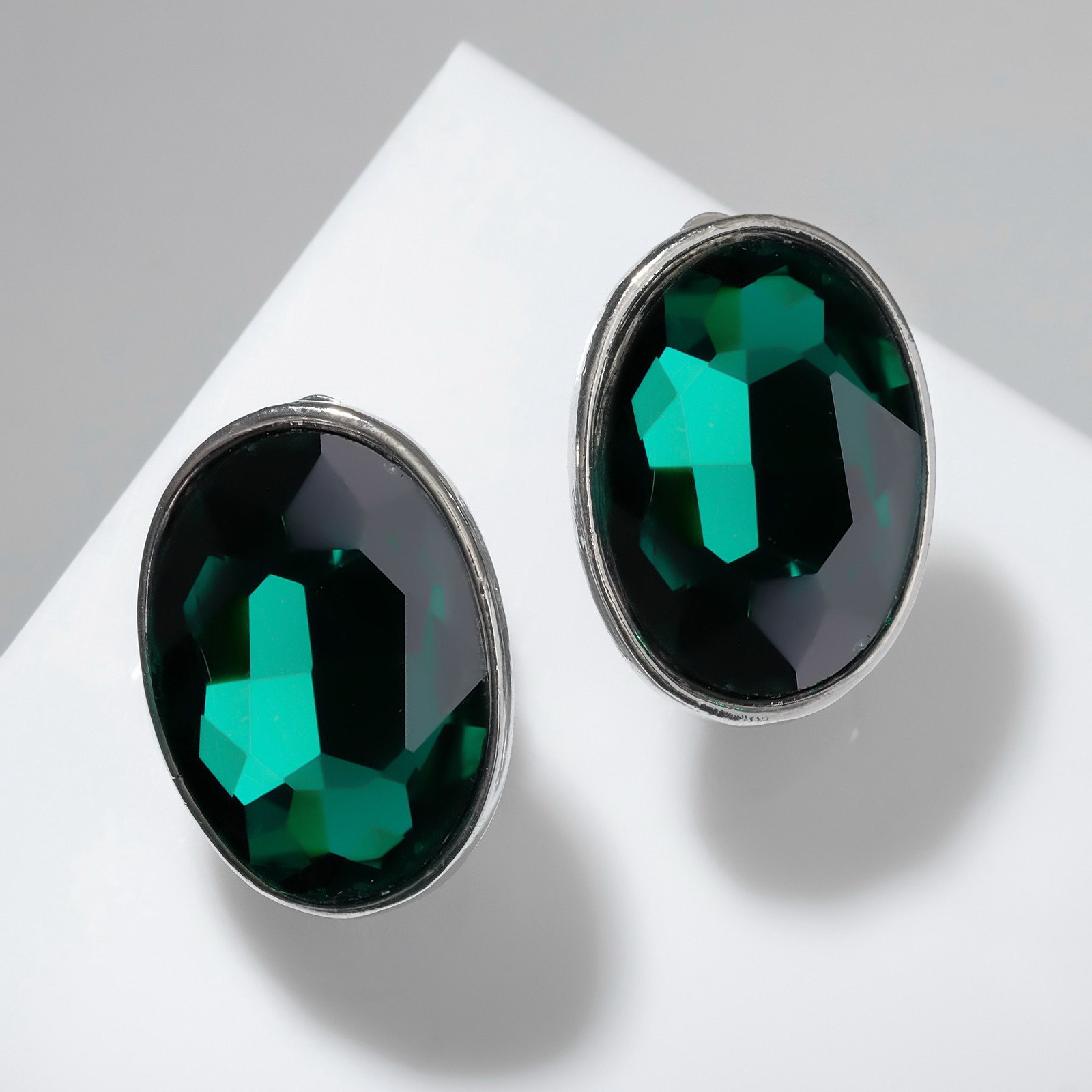 Клипсы "Вечеринка" овалы, цвет изумрудный в серебре, 2x2.5x1 см., QF, Китай