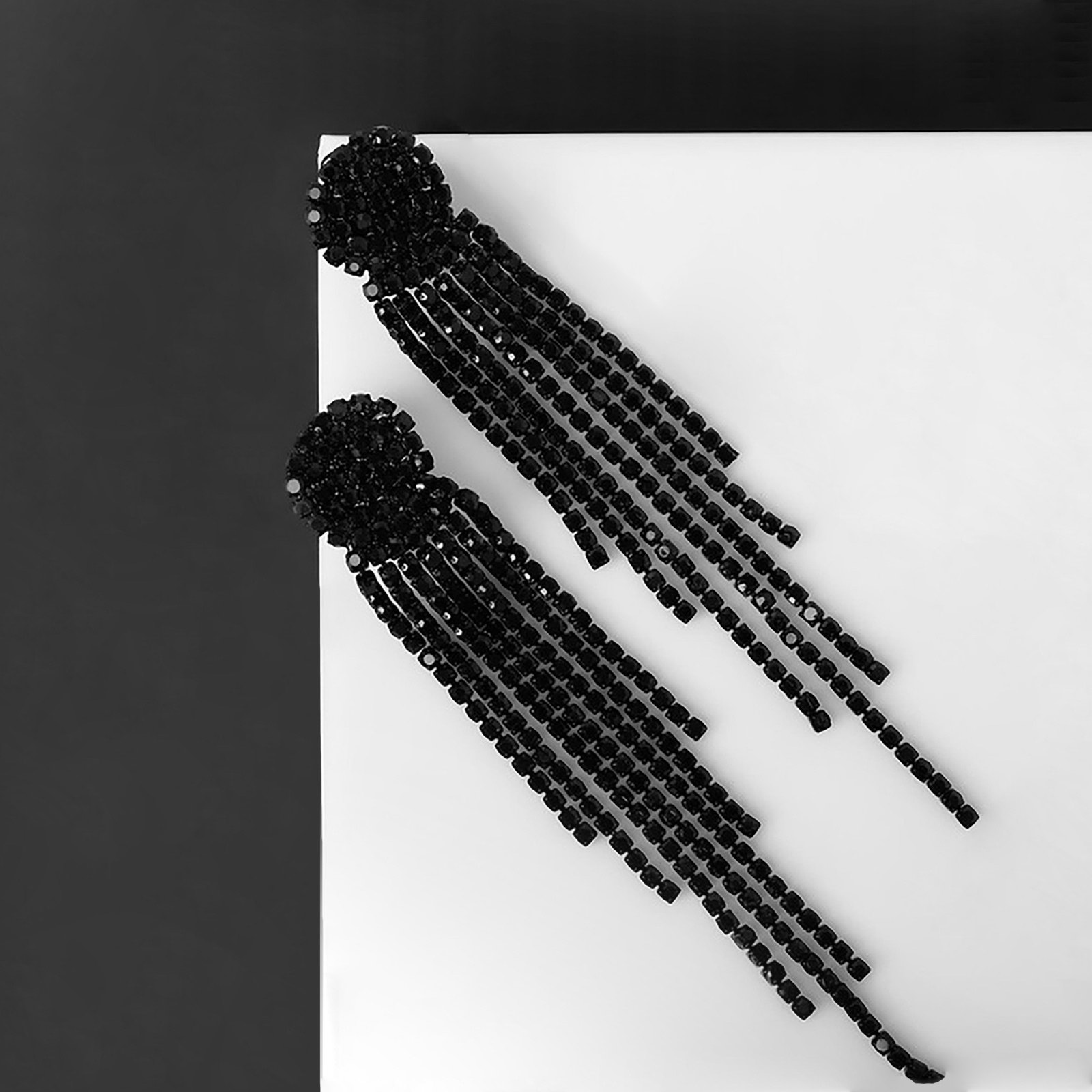 Клипсы для ушей висячие со стразами "Диско", элегантность, цвет чёрный, 2.2x6x1 см., QF, Китай