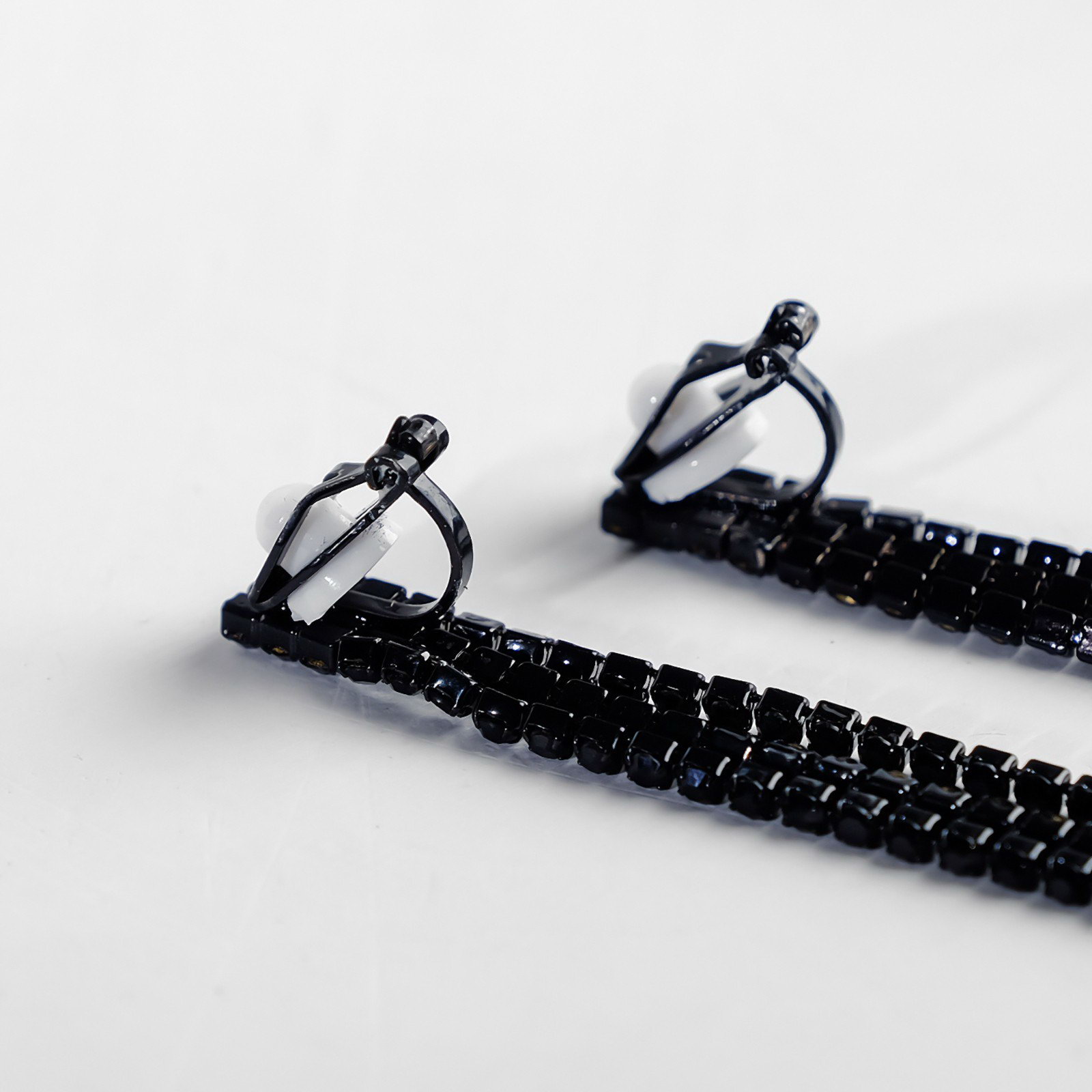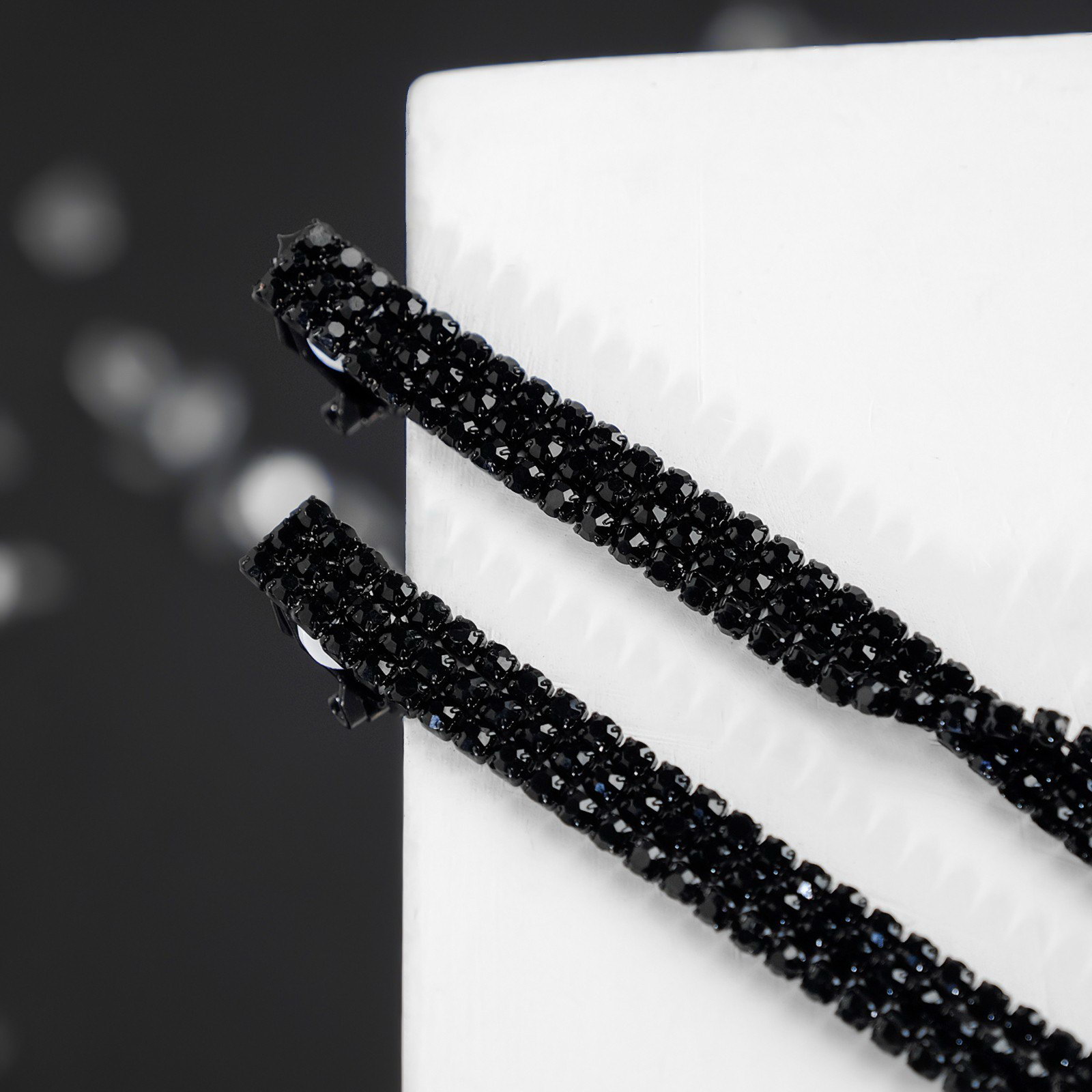 Клипсы висячие со стразами "Лёд" классика, цвет чёрный в чёрном металле, 1x15x1 см., QF, Китай