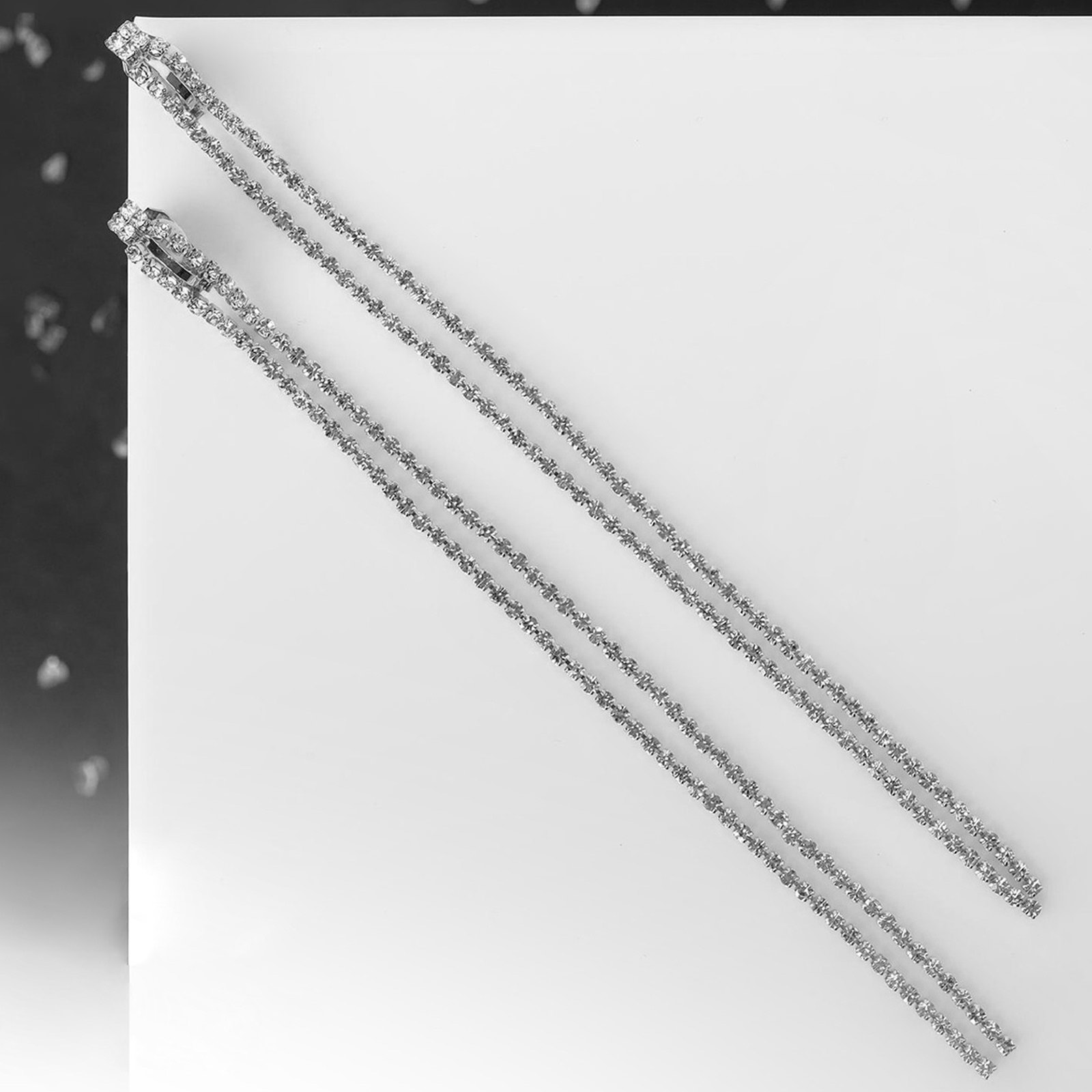 Клипсы для ушей висячие со стразами "Лёд", классика 2 ряда, цвет белый в серебре, 1x15x0.5 см., QF, Китай