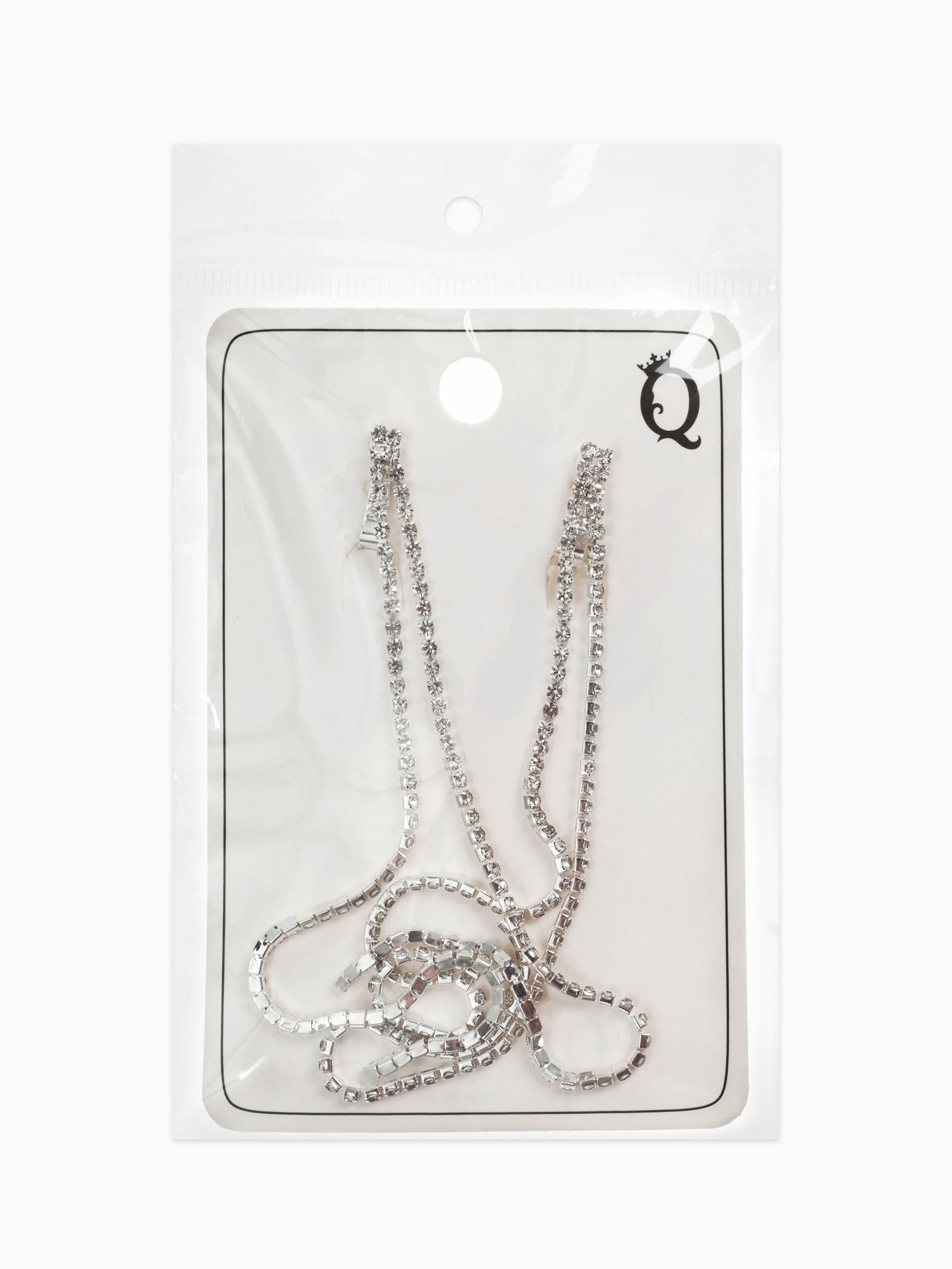Серьги клипсы для ушей висячие со стразами "Лёд", белые в серебре, 1x15x0.5 см., QF, Китай