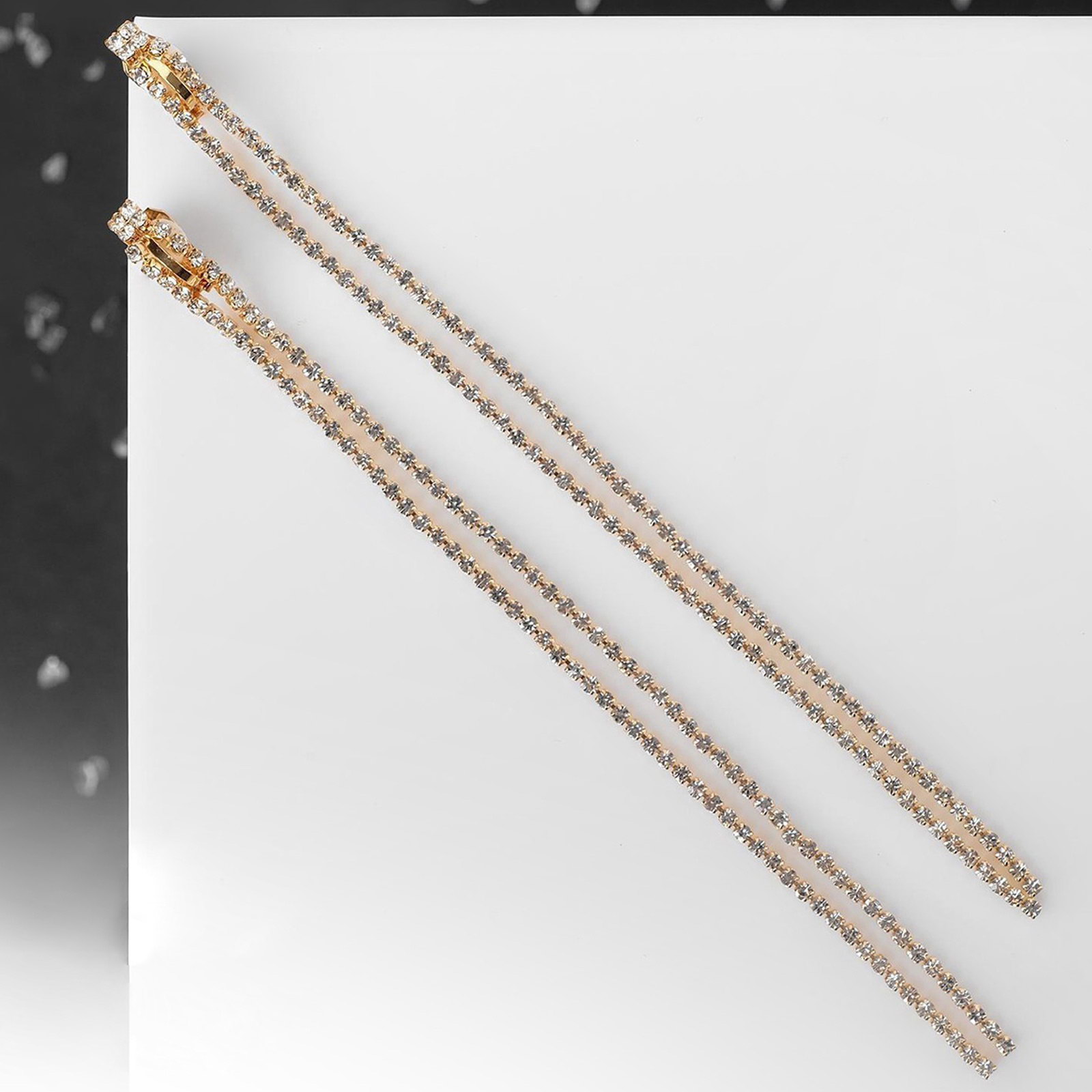 Клипсы для ушей висячие со стразами "Лёд", классика 2 ряда, цвет белый в золоте, 1x15x0.5 см., QF, Китай