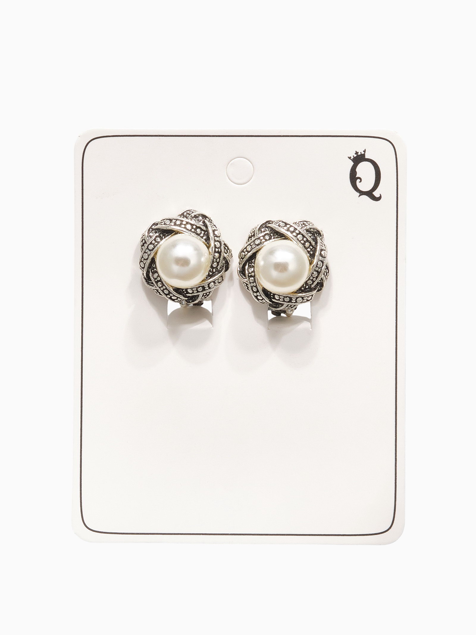 Клипсы "Грейс" внахлёст с бусиной, цвет белый в чернёном серебре, 2x2x2 см., QF, Китай