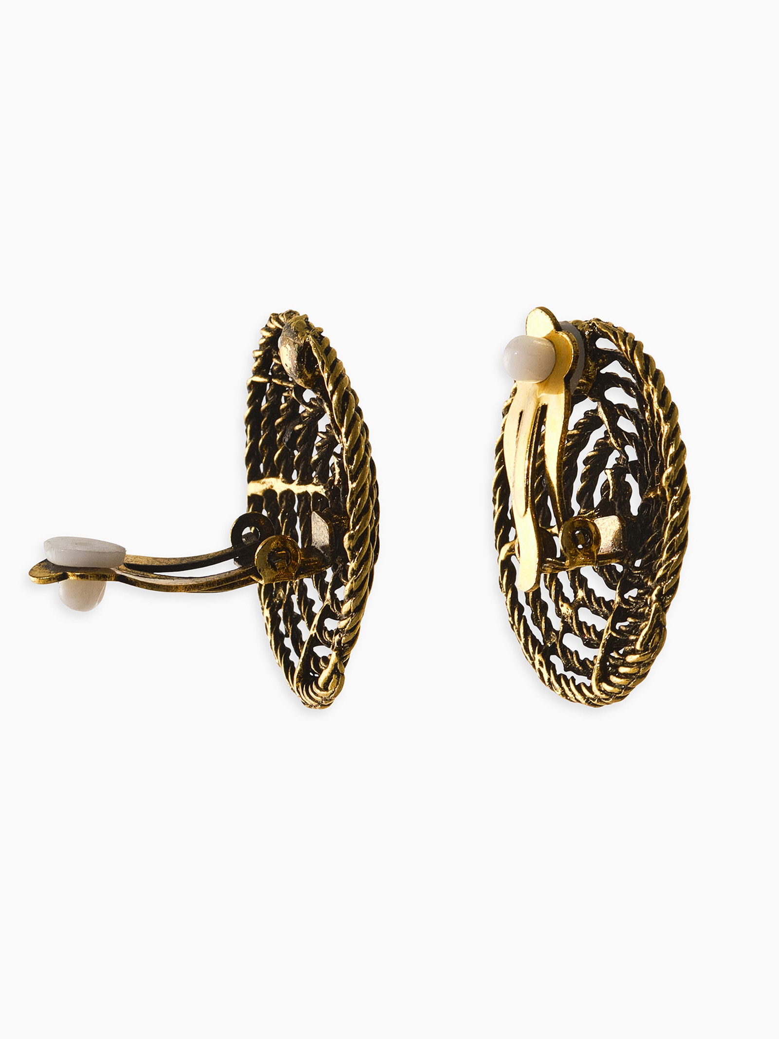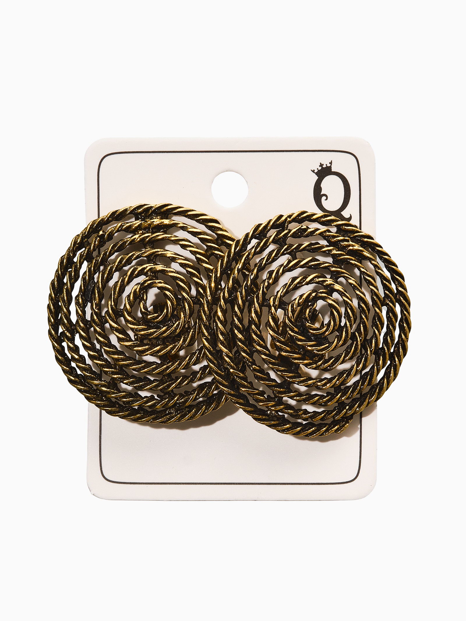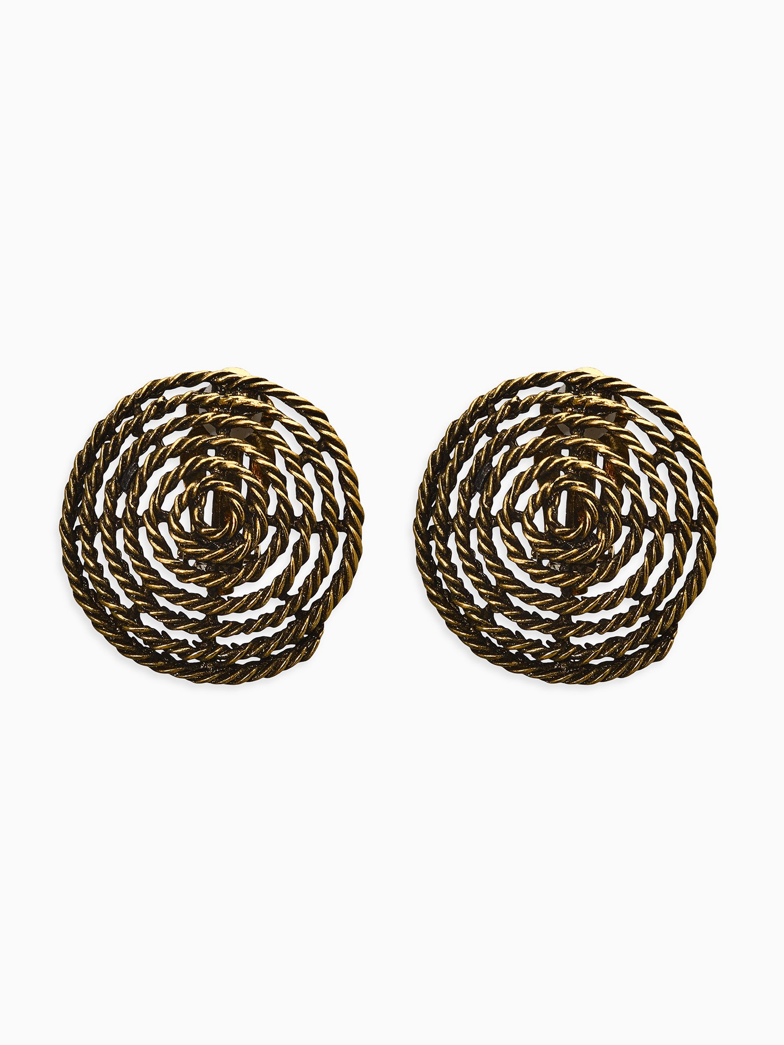 Клипсы "Гипноз", круг из веревки, цвет чернёное золото, 3x3x1 см., QF, Китай