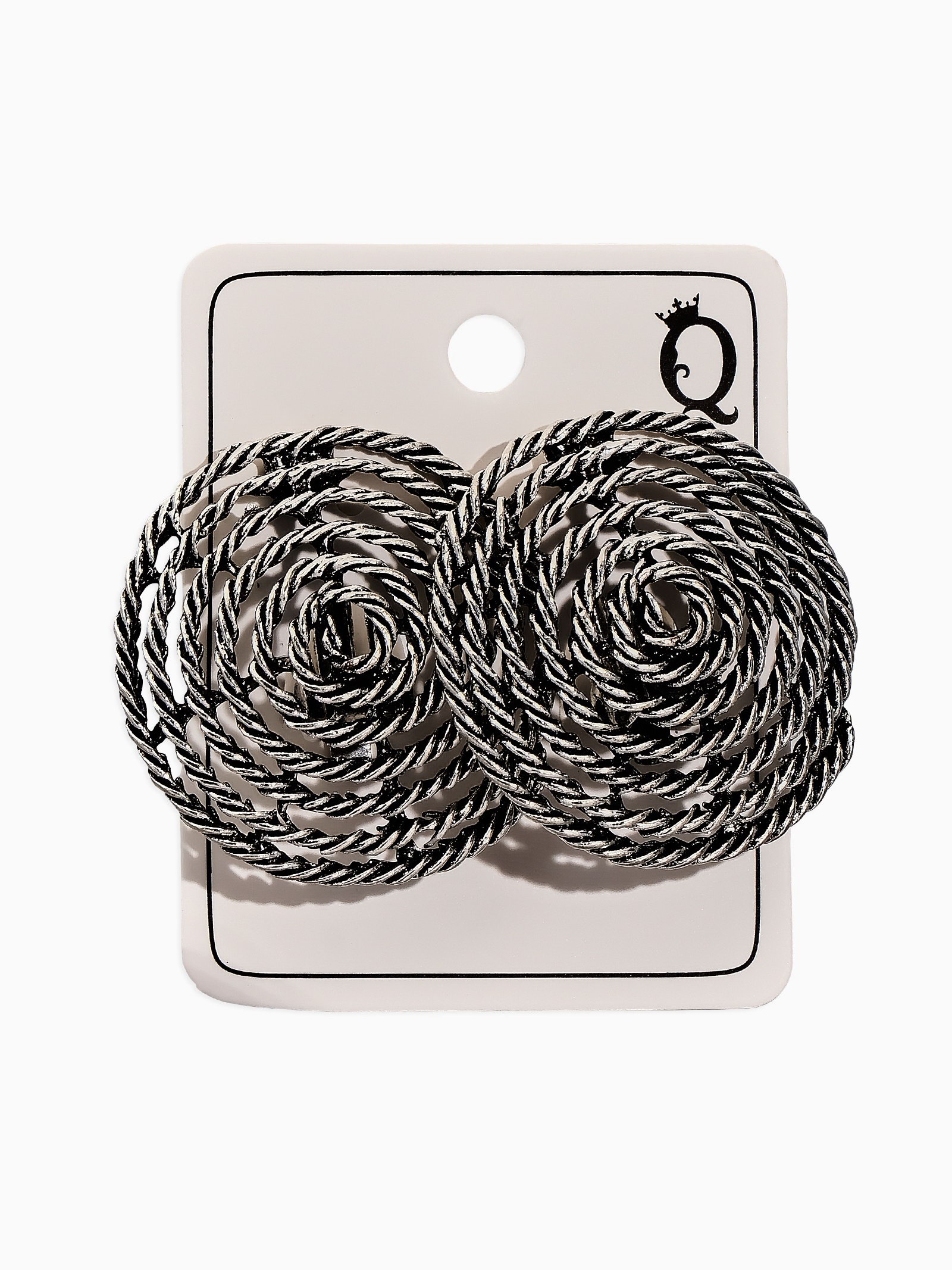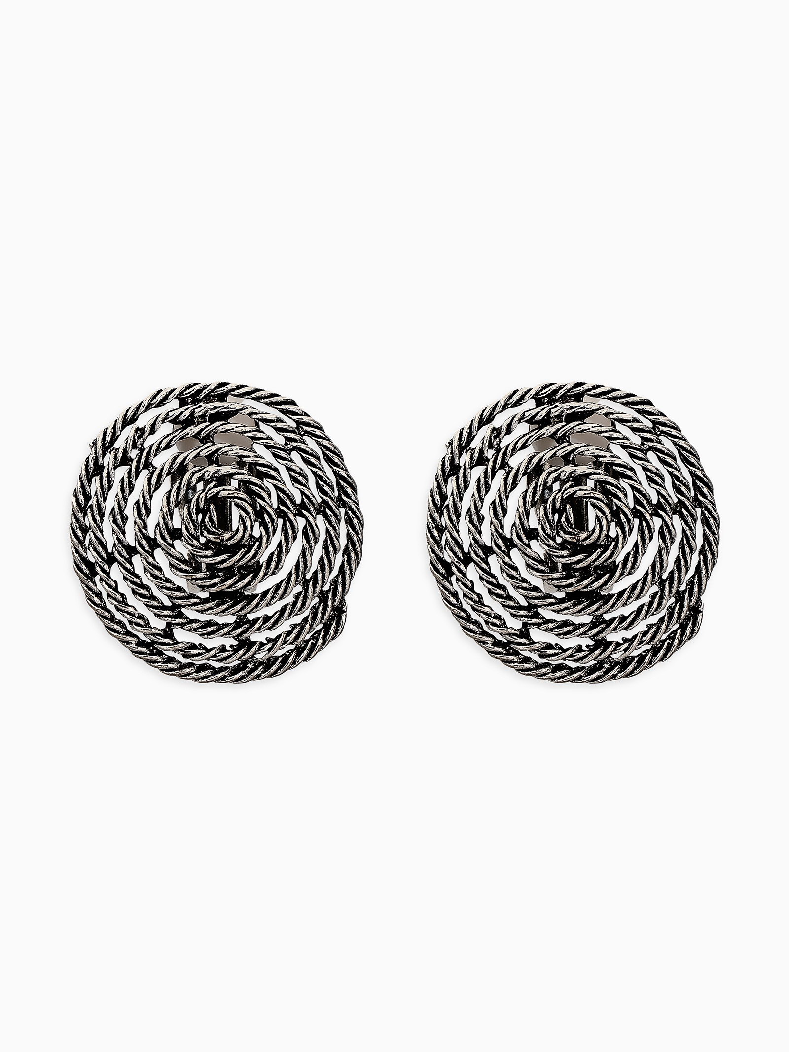 Клипсы "Гипноз", круг из веревки, цвет чернёное серебро, 3x3x1 см., QF, Китай