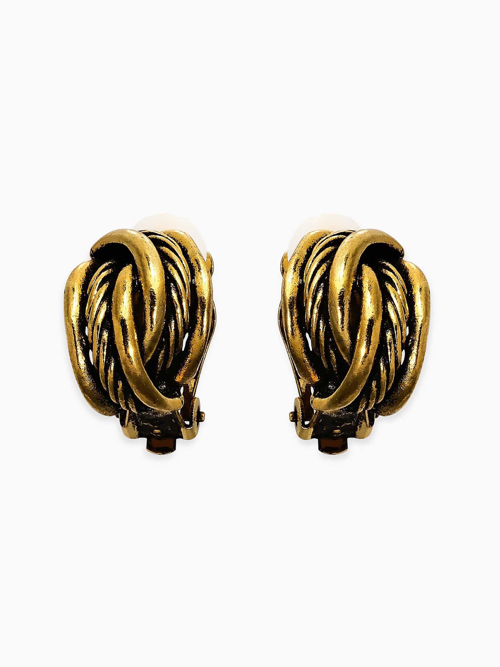 Клипсы "Узел", цвет чернёное золото, 1.5x2x2 см., QF, Китай