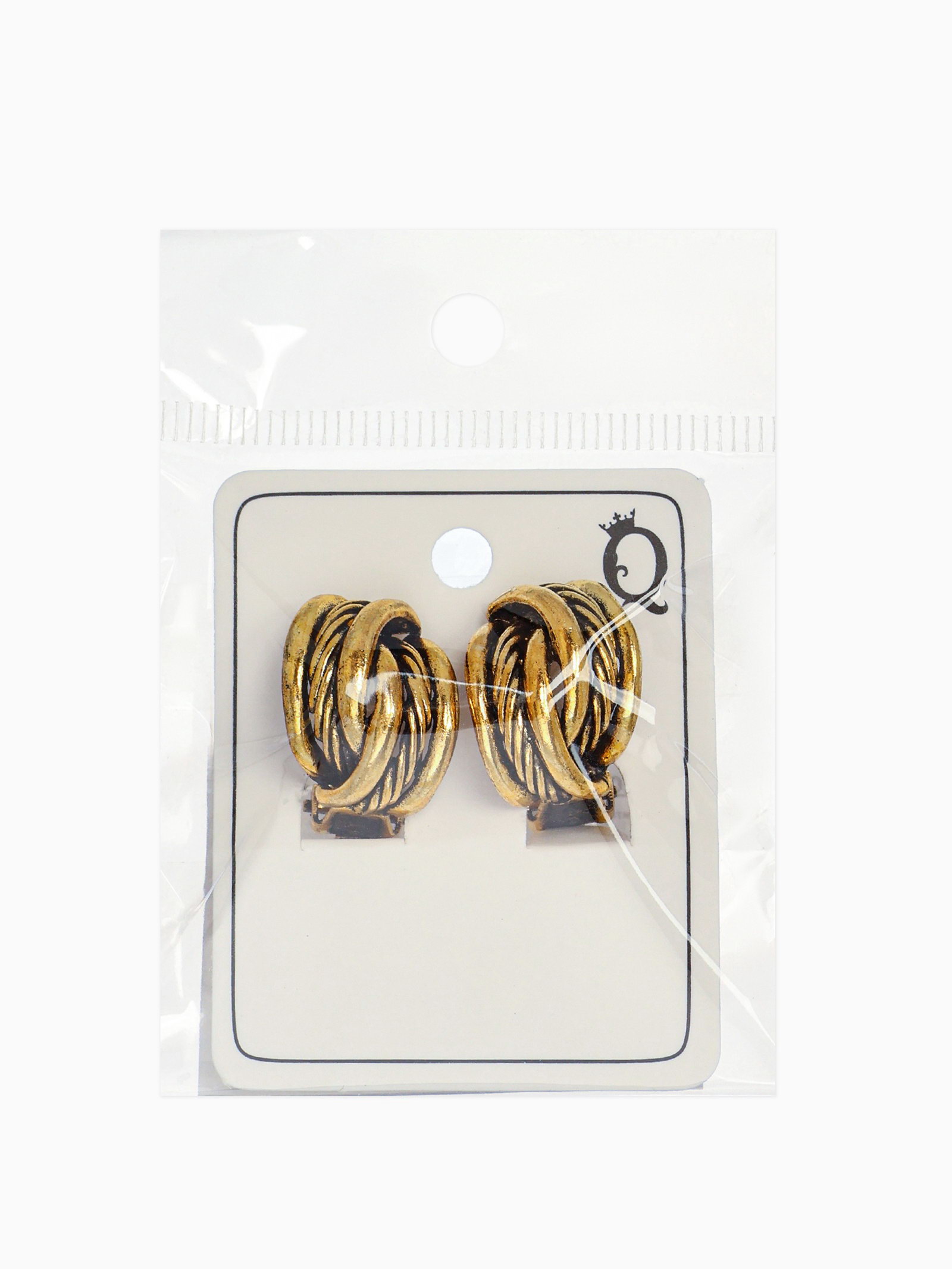 Серьги клипсы для ушей "Узел", цвет чернёное золото, 1.5x2x2 см., QF, Китай