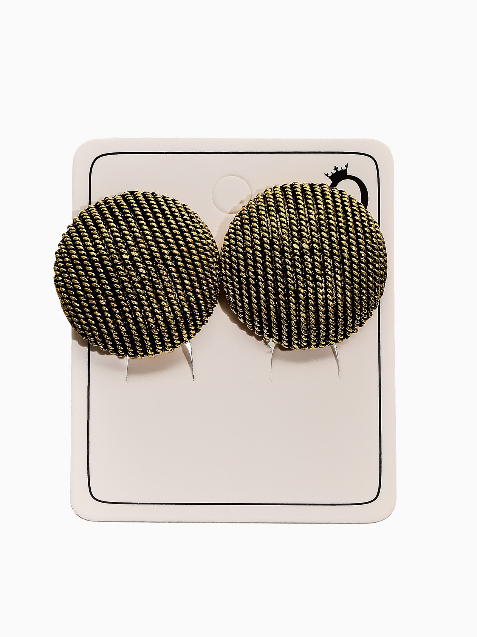 Клипсы "Круг в рубчик", цвет чернёное золото, 2.1x2.1x1 см., QF, Китай