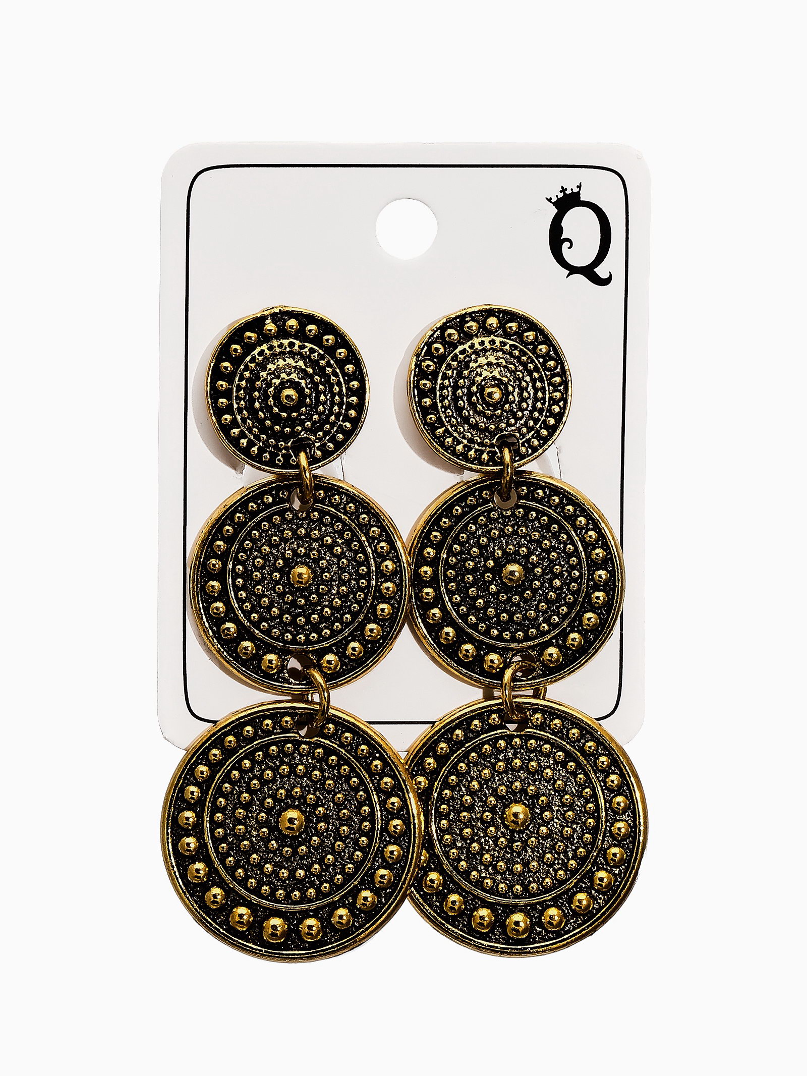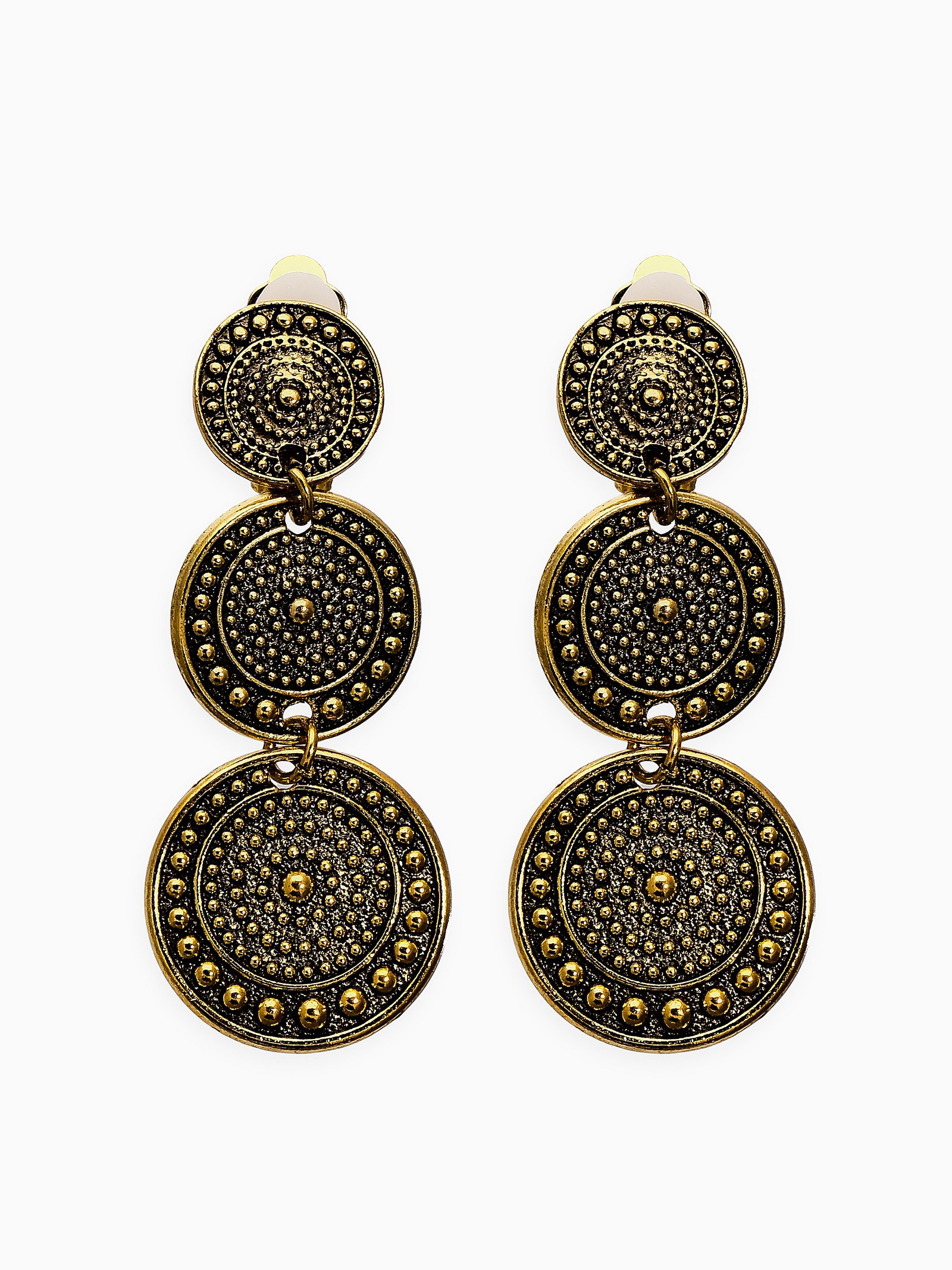 Клипсы "Три диска", цвет чернёное золото, 2x5.5x0.5 см., QF, Китай